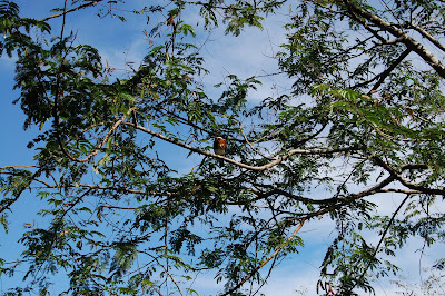 Durante o almoço, Leonardo alimentou a lambarizada com o sanduíche que ele não comeu no café da manhã. A quantidade de lambari era tanta, que chamou a atenção de um martim-pescador, que ficou um bom tempo pousado, bem pertinho da gente e, pacientemente esperou a hora certa para atacar. Em seguida chegou outra ave.