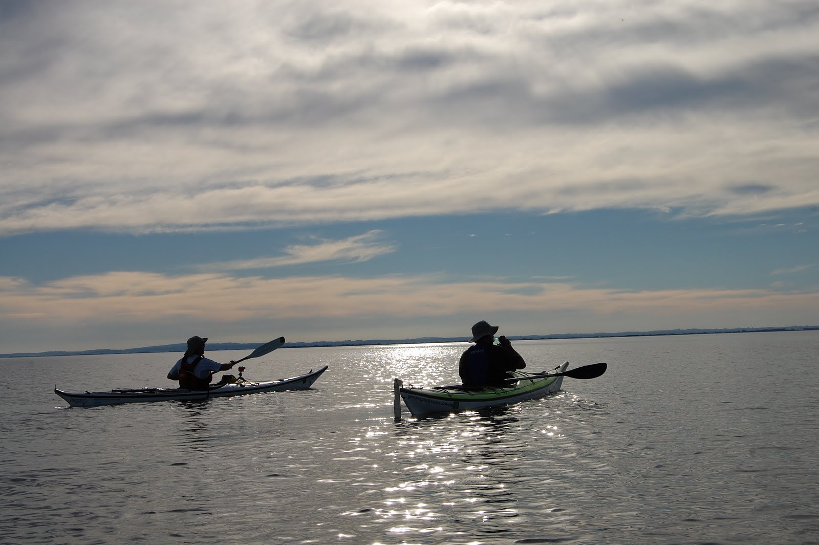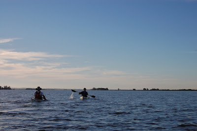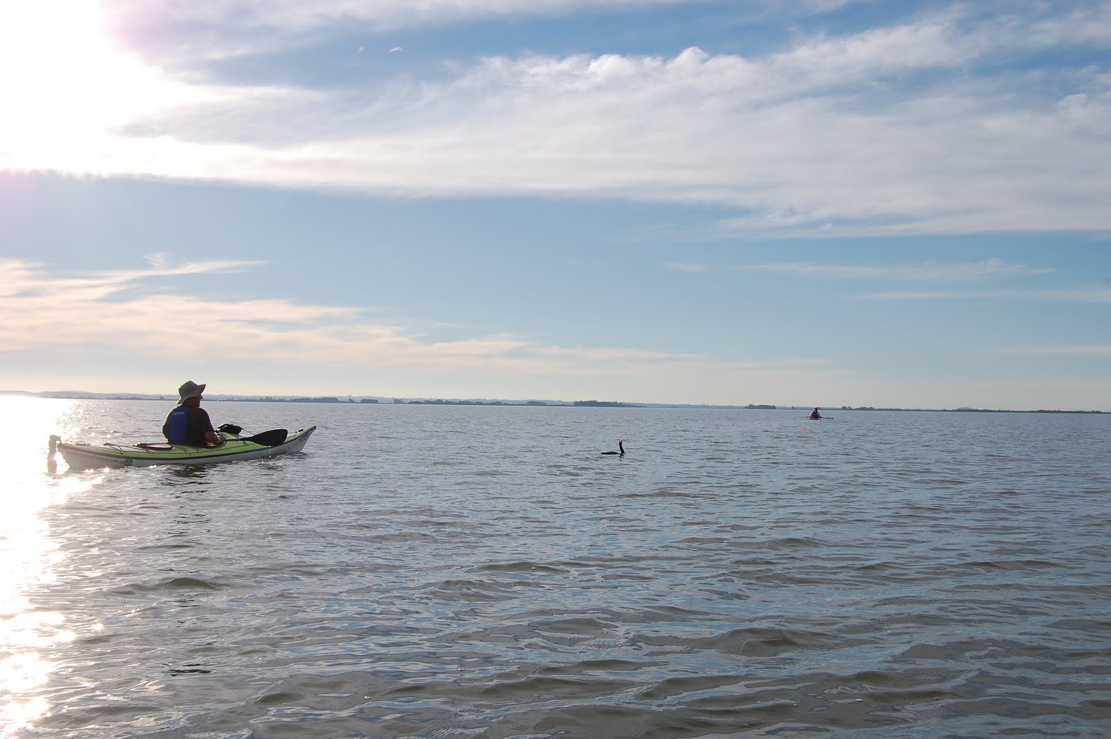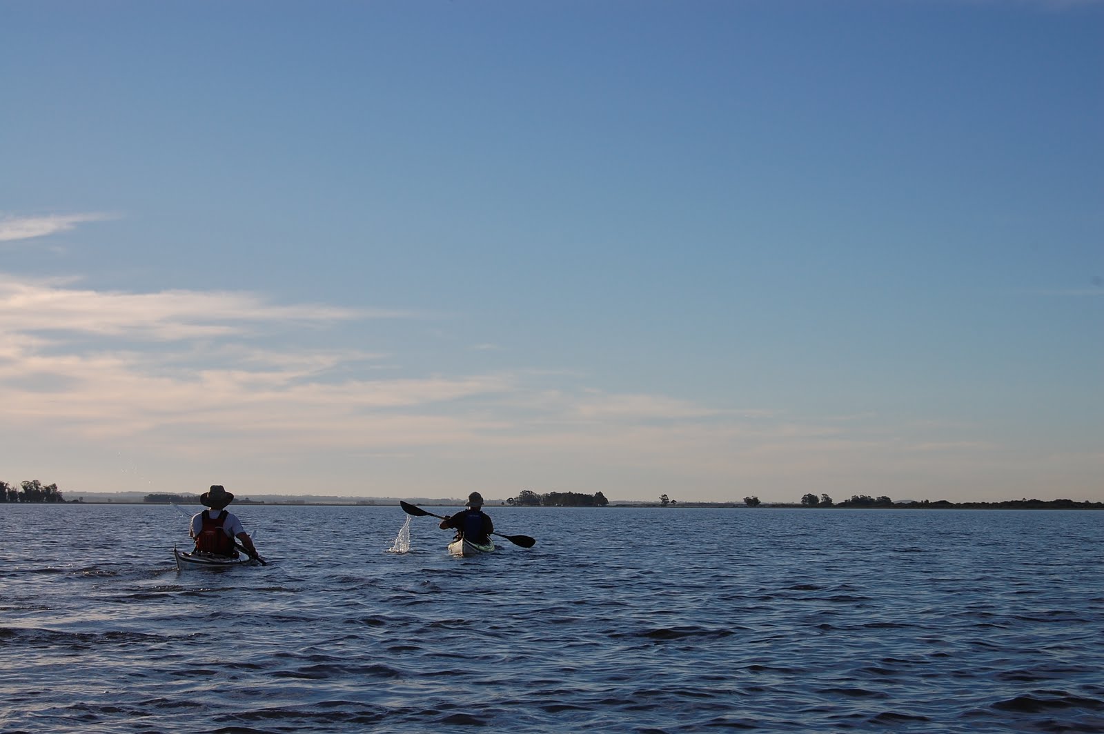 Cansaço ou exibicionismo?Se lembro bem, a travessia de volta ao camping foi de 13 Km e levamos duas horas para fazê-la, admirando um belíssimo final de tarde. Depois de um determinado momento, com o cansaço chegando, parece que nada tá bom. Nenhuma posição no caiaque tá boa, os braços começam a doer, depois as costas, o tempo parece que não passa. Mas passa e a gente chega para o término de mais uma remada, mais um cantinho da lagoa explorado!