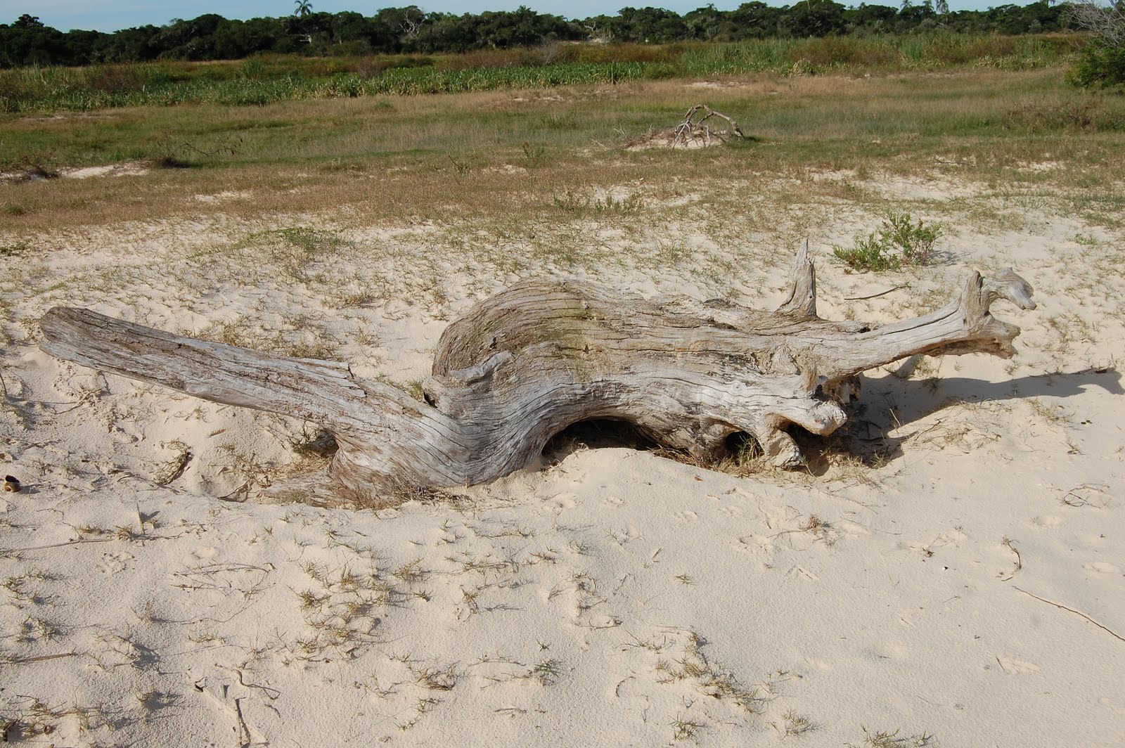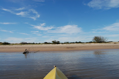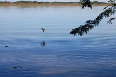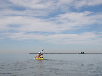 O minúsculo e difícil pedaço de terra onde almoçamos ficava no finzinho do canal, à direita. Quem diria, que à esquerda teríamos praia a perder de vista. Porém, a primeira faixa de areia que vimos, não seria um bom local para aportarmos, pois fui até a margem para deixar um besouro que se afogava na lagoa e o cheiro que exalava daquela praia, não era nem um pouco agradável.