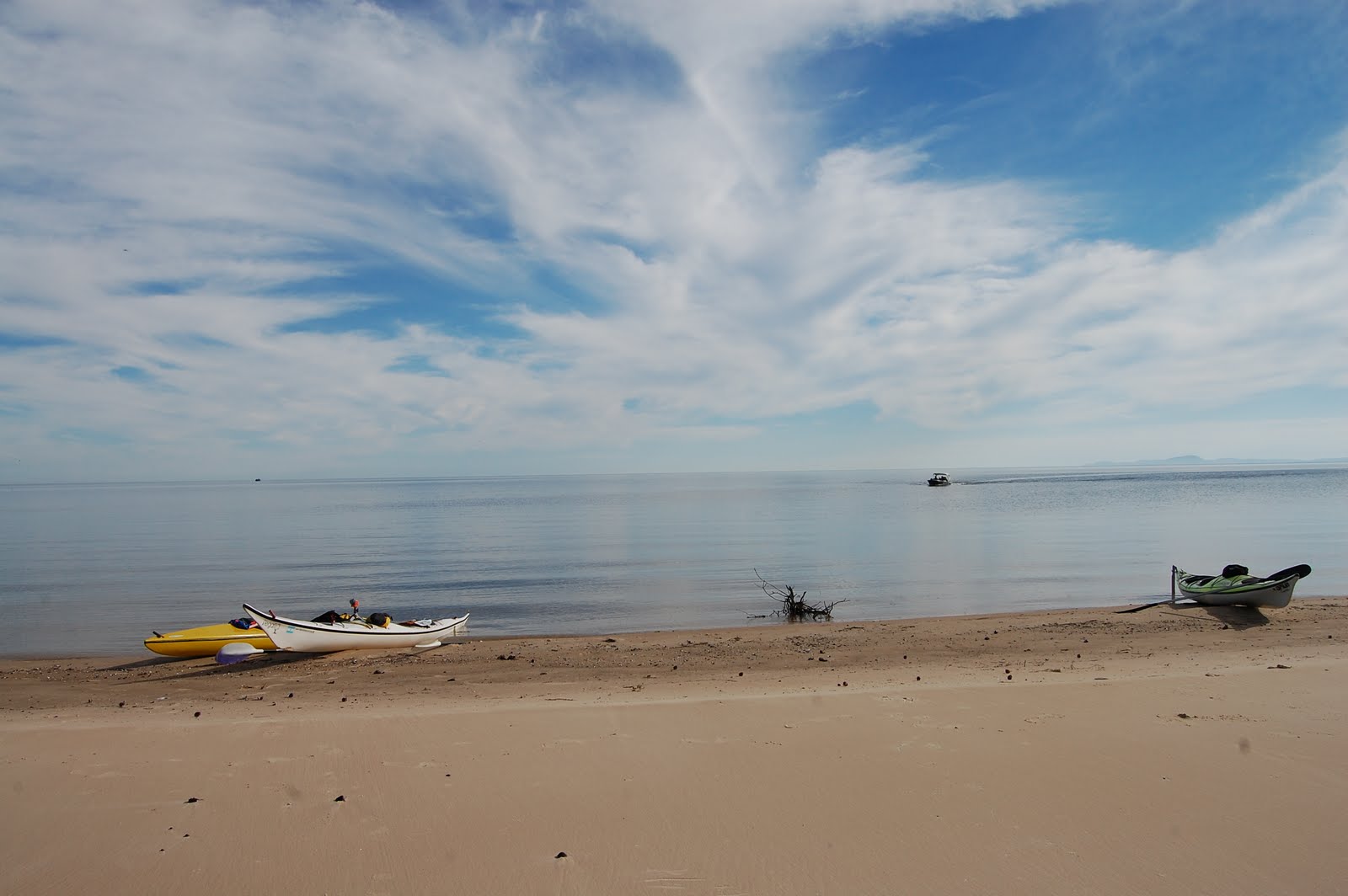 A travessia foi tranquila, a água estava espelhada e sem ondas. Um bando de biguás descansava na entrada do canal e Leonardo, que estava na frente, comentou que seria uma boa oportunidade para o Germano testar a nova máquina fotográfica. Nos afastamos um pouco para não assustar o bando e Germano fotografar tranquilamente. Alguns barcos pesqueiros se preparavam para o almoço entrando no canal e parando nas margens. Não sei se os pescadores chegavam a descer dos barcos, pois não tinha muito local adequado para aportar e por esse motivo, foi difícil achar uma praia para o nosso almoço.