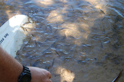 Leonardo alimentando os lambaris e...