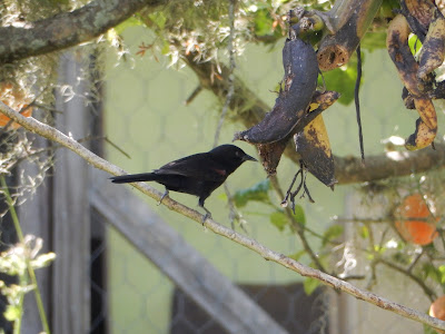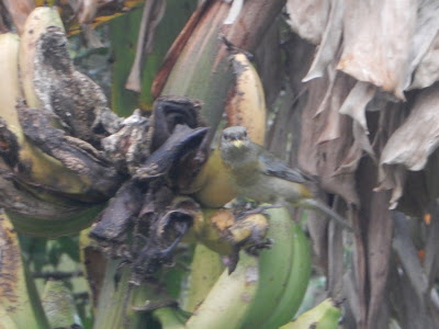 Este foi o passarinho menos colorido que vi, se deliciando das nossas bananas.