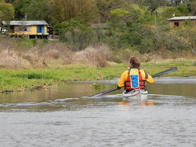 Fazia muito tempo que eu não remava no rio Maquiné. Para dizer a verdade, que eu me lembre, só remei duas vezes nele. Uma delas, registrada aqui no blog, em 2009, quando nem sonhava  em morar em Maquiné, e Leonardo e eu remamos, um pouco antes da ponte nova em direção a Lagoa. E a outra, já de posse do Recanto, saindo da nossa casa e subindo o rio, mas não fomos muito longe, nem chegamos no bar do Moacir, de onde começamos a remada em 2009. E ainda não postei sobre esta pequena remada.