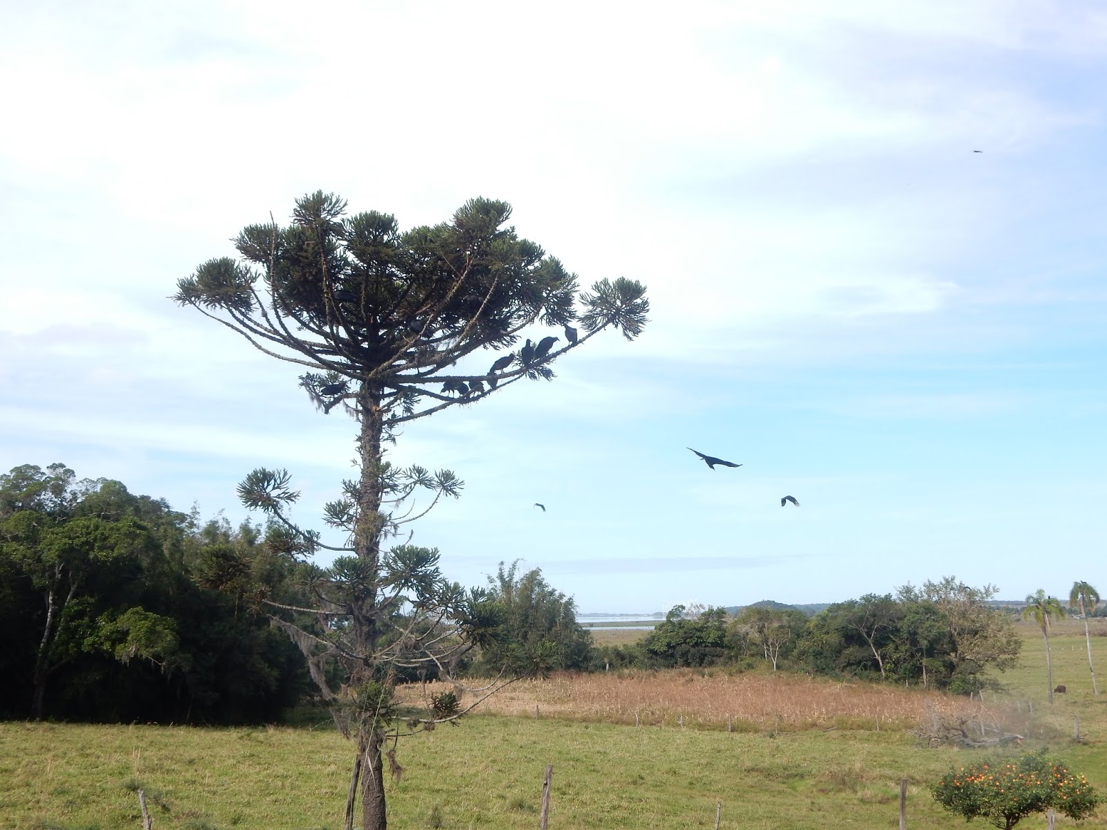 Eles estavam na fazenda de um vizinho que cria gado e, pela quantidade de urubus, o vizinho deve ter tido uma baixa no rebanho.
