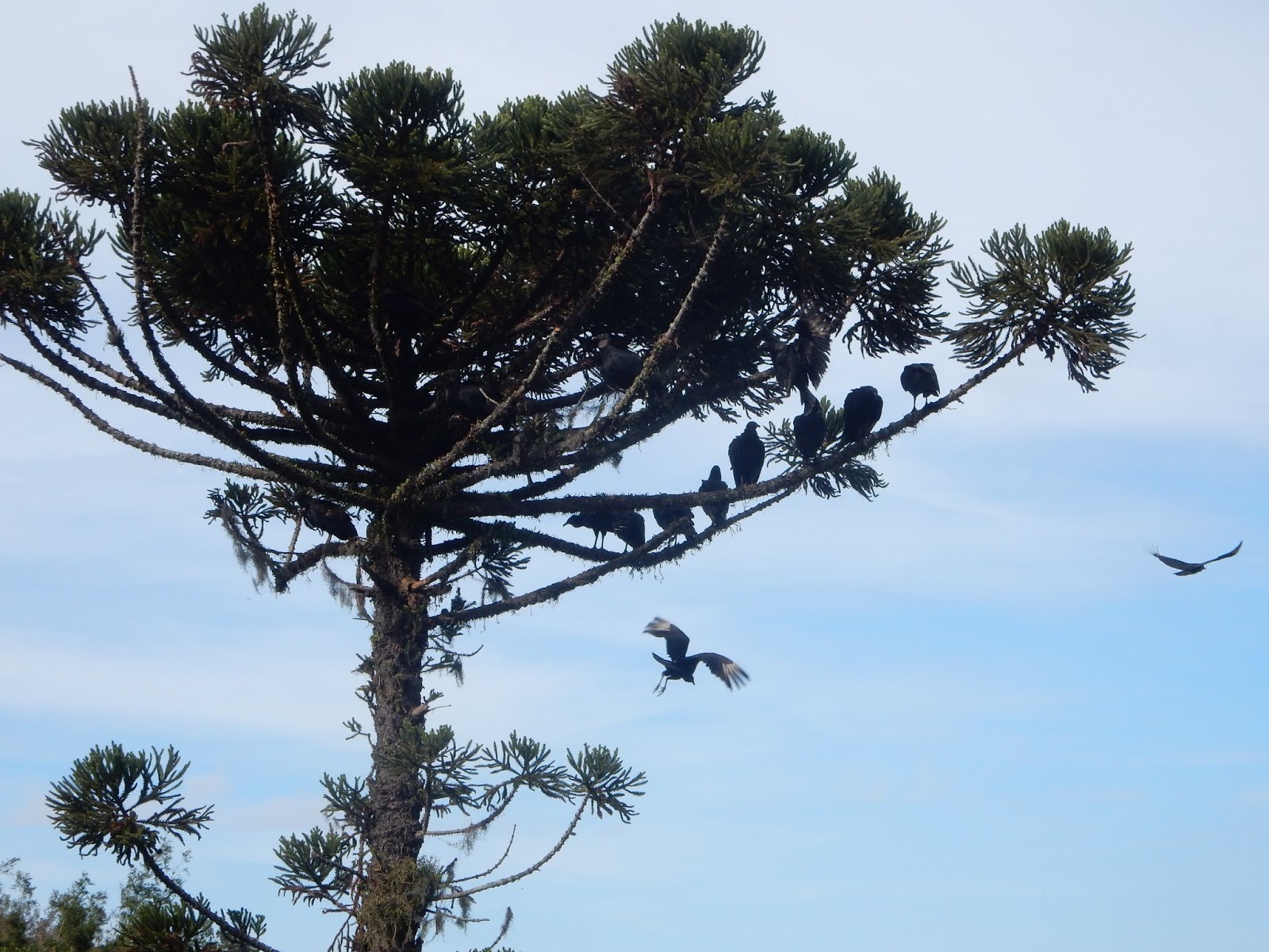 Nunca vi tantos urubus juntos! Tinha urubu nos postes da estrada, nos galhos das árvores, no chão...
