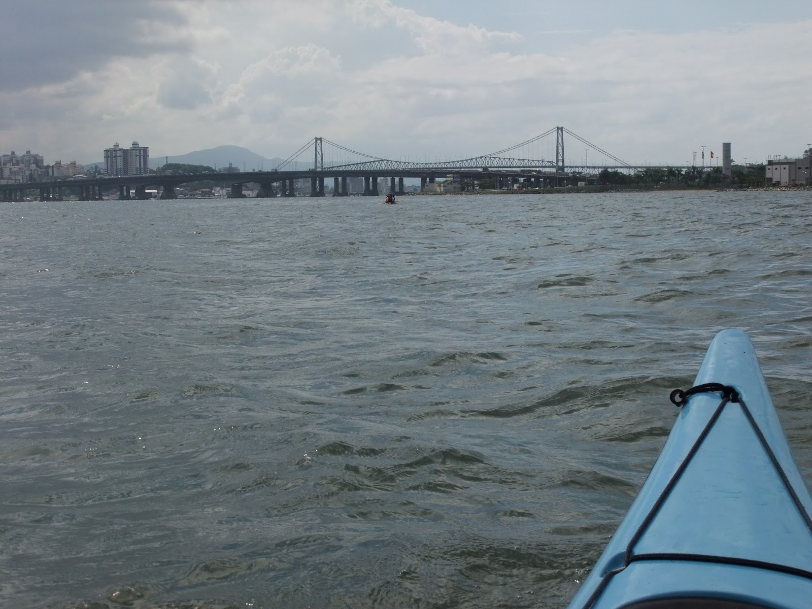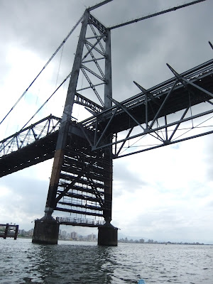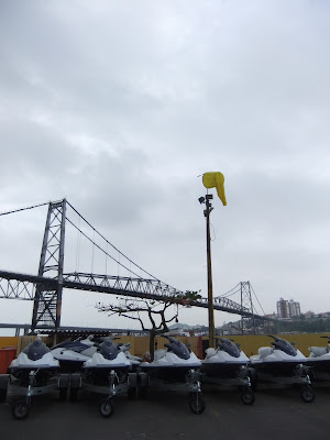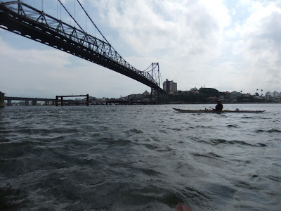 Quando pequena, passei várias vezes pela ponte Hercílio Luz, pois meu avô paterno morava lá e íamos visitá-los seguidamente. Nunca havia pensado que um dia, passaria por baixo dela, por água. Pode parecer besteira para muita gente, mas senti uma emoçãozinha especial na hora, além do medo que ela desabasse sobre a minha cabeça. :-)