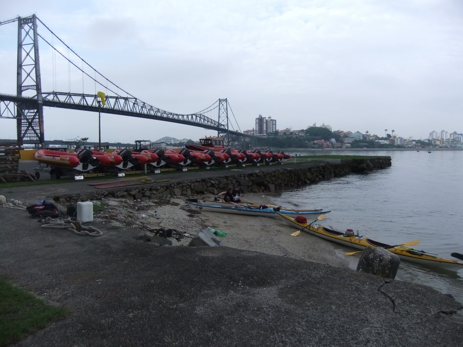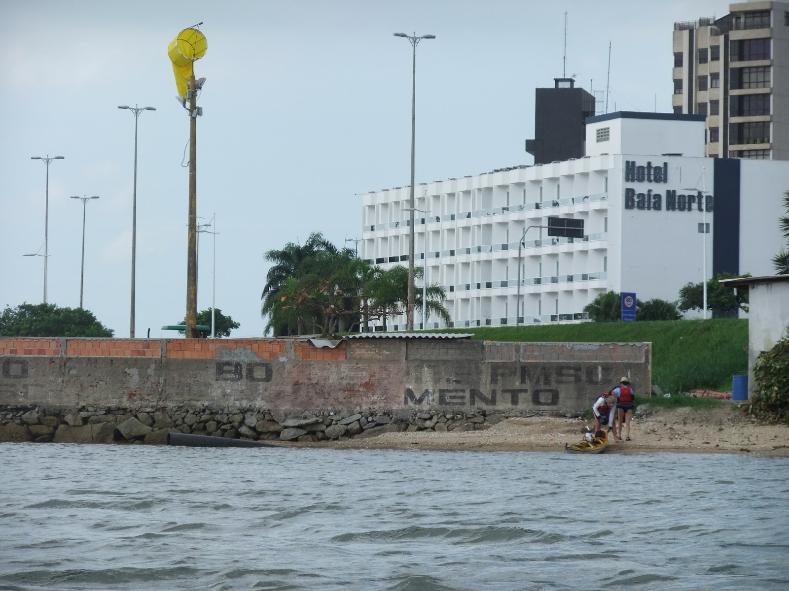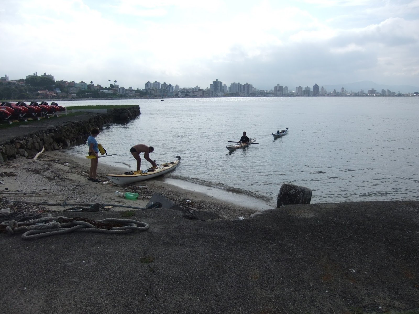 Pena, que precisávamos ir embora, pois a conversa estava boa pra caramba! O bombeiro Paulo é uma simpatia e lamentou não saber da nossa parada no GBS antes, pois comentou que poderíamos ter acampado na ilha! Nós lamentamos mais ainda!!!! Teria sido muito bom acampar lá. A remada do dia anterior acabou bem cedo, eram umas 15h30 quando chegamos no GBS e não seguimos adiante porque não teríamos local para acampamento tão cedo. Teríamos tempo mais do que suficiente para chegar na ilha. Não que o acampamento no GBS não tenha sido bom, não mesmo! Recebemos tratamento VIP no GBS, fomos super bem recebidos, a caminhada até o centro foi bem legal, de noite conhecemos uma sorveteria, a Gelateria Max, na avenida Beira Mar, que fez valer a longa caminhada até ela, mas com certeza, todos lamentamos não termos acampado na ilha do Guará Grande.