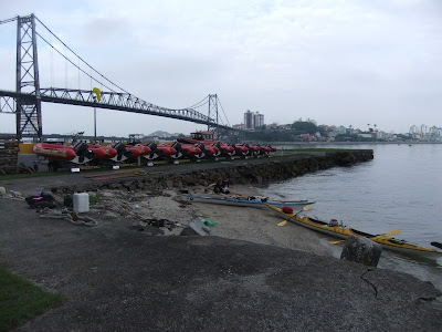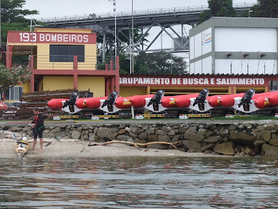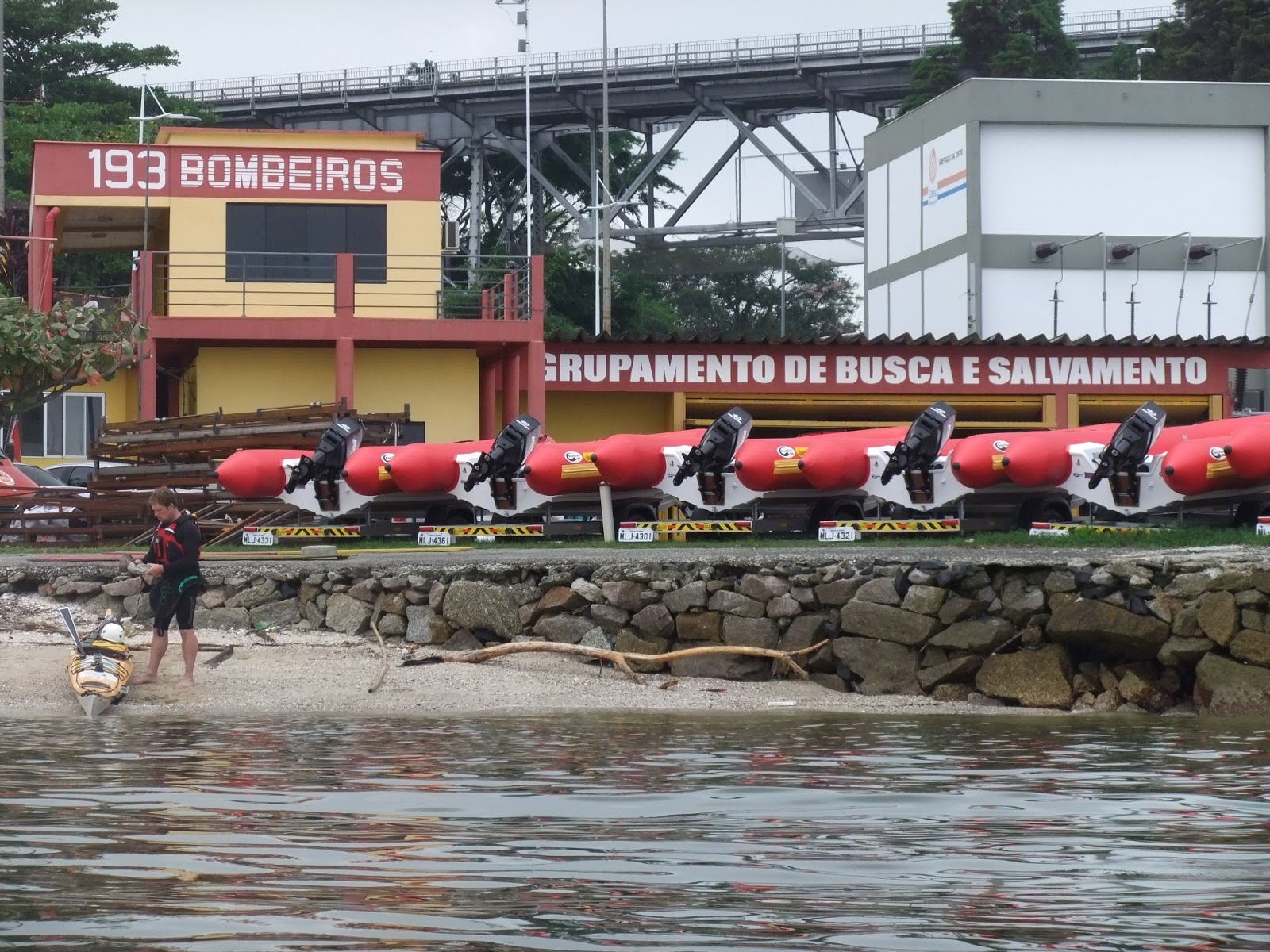 Um dos bombeiros (não lembro a patente dele), mas o nome era Paulo (Roberto ou Ricardo?), bom, um senhor bombeiro que chegou lá quando estávamos nos ajeitando para partir, veio falar conosco, perguntou qual era a nossa ideia de remada, perguntou pelos caiaques e contou rapidamente, alguns feitos dele, nos convidou para aportarmos numa ilha que havia a uns 4 Km dali, e que é do Corpo de Bombeiros. Após o hasteamento da bandeira, ele iria para ilha e ao nos despedir, comentou: "daqui a pouco passo por vocês!"