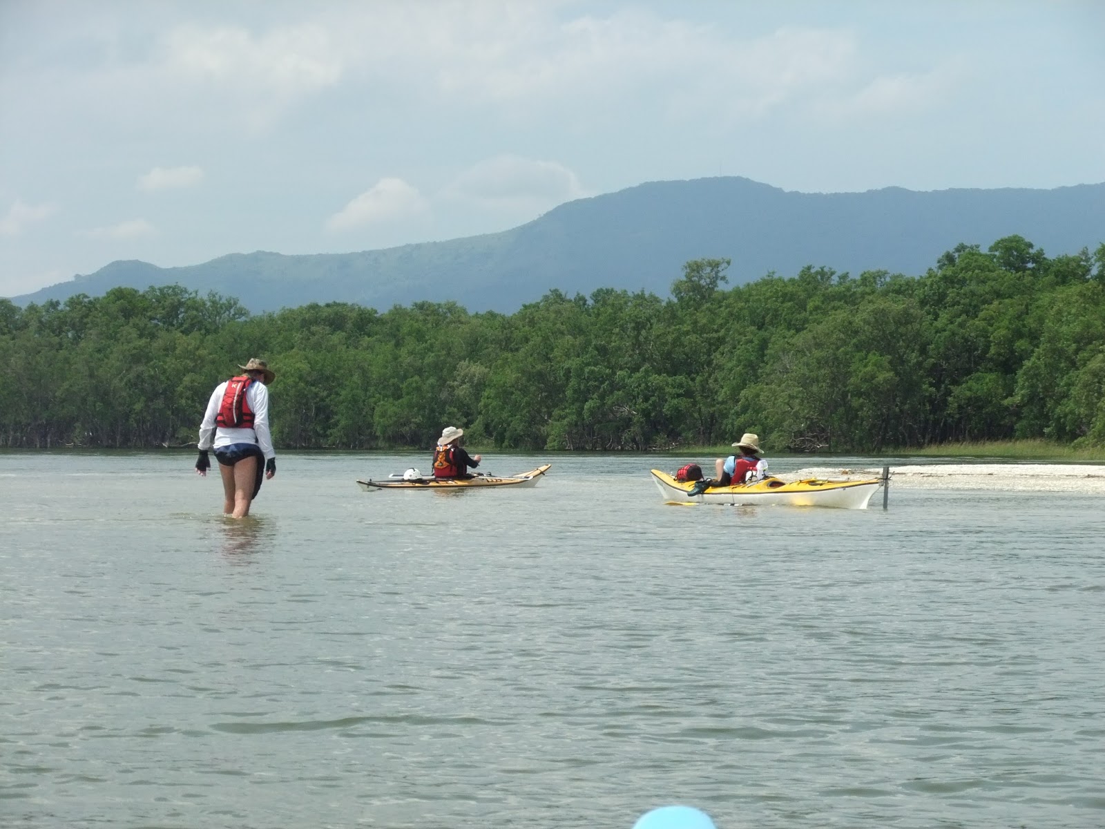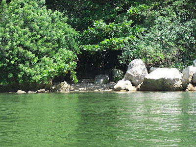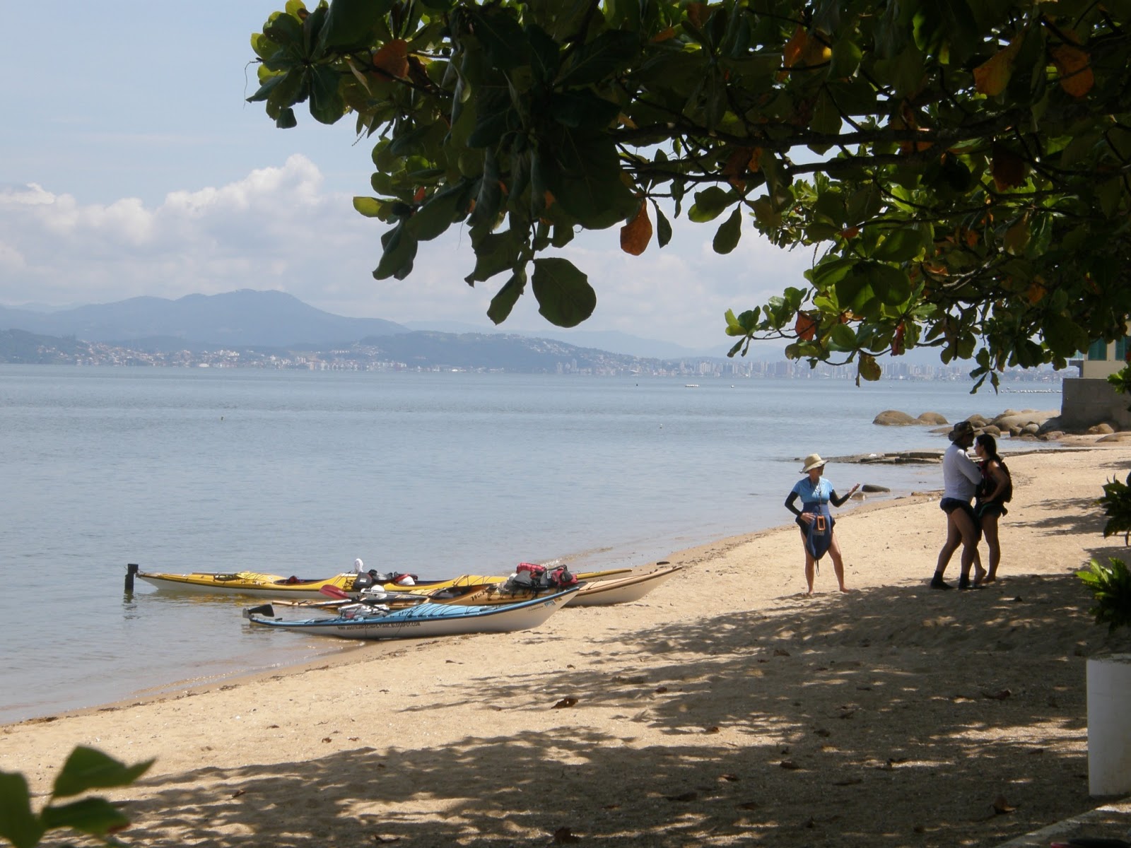 Continuei remando e lutando contra o vento. Leonardo tentava ficar sempre perto de mim e Maria Helena e Trieste tiraram uma boa distância a nossa frente, quase perdendo-os de vista. Vendo a costa de longe, a minha direita eu só via pedras e à esquerda, mangue. À medida em que nos aproximávamos da costa, fui percebendo uma prainha ao longe, entre as pedras e o mangue, e suspirei aliviada, pois teríamos um lugar para parar e descansar um pouco antes de remarmos na direção da Ponta da Daniela, onde pegaríamos mais vento.