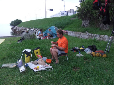 Só pediu que usássemos a água do chuveiro com moderação não sei por que cargas d'água, mas a essa altura do campeonato, isso era de menos! Que maravilha! Ficamos todos contentes com a notícia e Leonardo tratou de montar nossa barraca logo, antes que os mosquitos resolvessem nos fazer companhia.