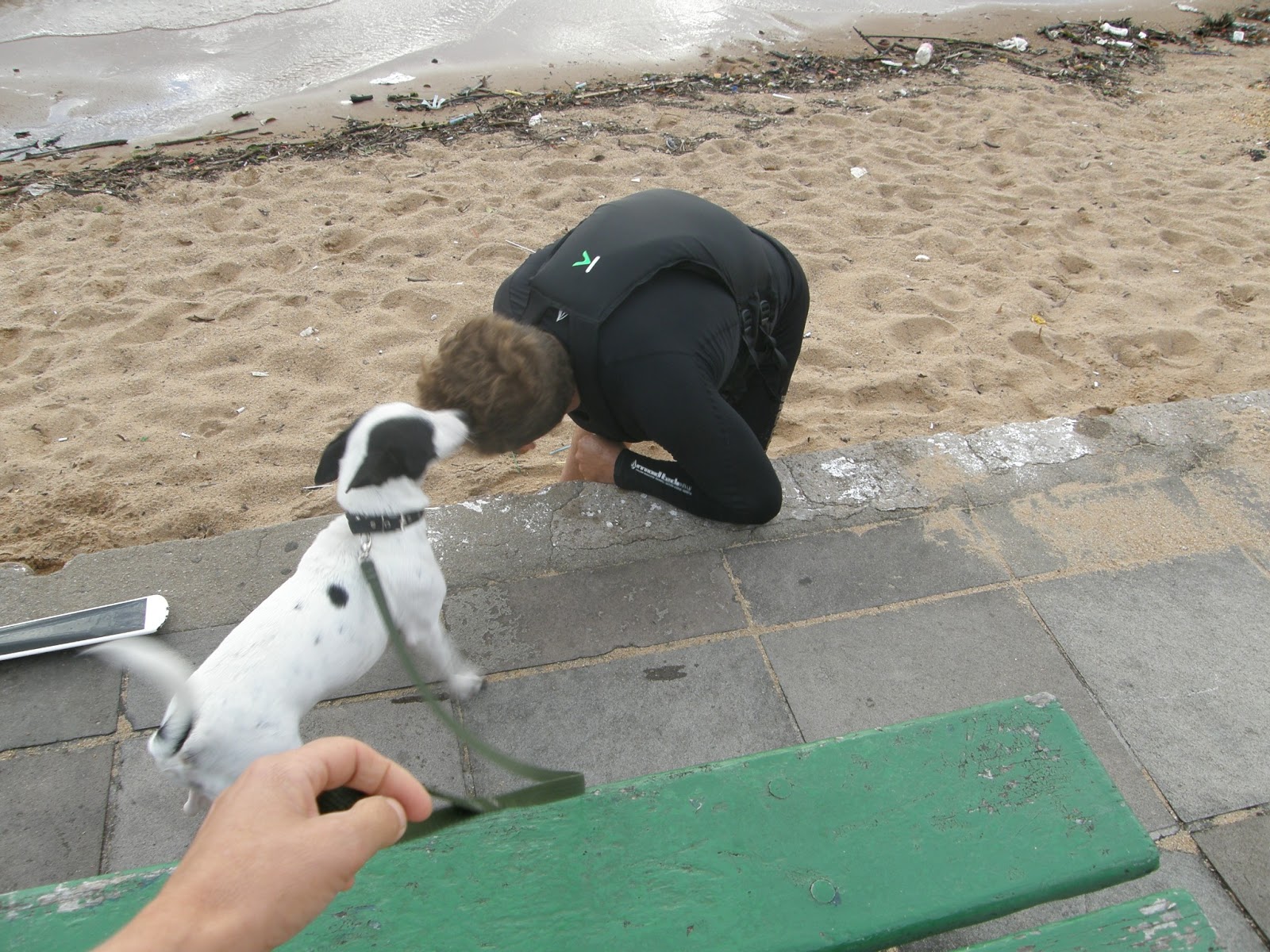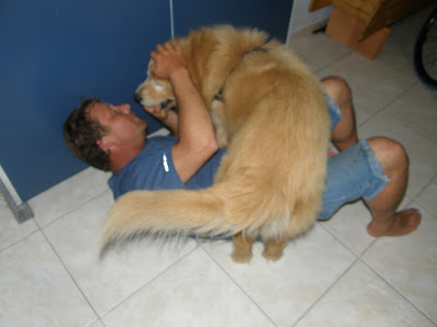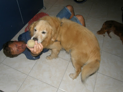Depois do café na padaria, cada um foi para o seu lado. Márcio pegou a estrada de volta para Tijucas. Trieste e Maria Helena foram para a pousada na lagoa da Conceição e Leonardo e eu, seguimos adiante, na direção da pousada onde estávamos na praia dos Ingleses. A casa da minha irmã fica no caminho então, paramos lá para uma visitinha com segundas intenções: tomar um chima e lavar as tralhas. Acabamos ficando para jantar (que não estava na relação de segunda intenções. Juro!) e Leonardo, literalmente rolou, brincando com Apolo e Sandy, os cães da casa da minha irmã.