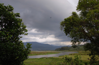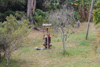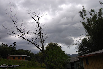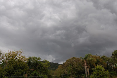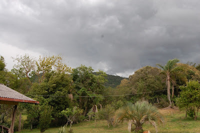 Lá pelas tantas, Leonardo e eu fomos ver como funcionavam as trilhas pela Ilha. Fomos até a casinha de informações e levei um baita susto quando vi, bem ao lado da casinha, um quati passeando no meio da mata, mas pertissimo das pessoas. Fiquei tão surpresa, tão empolgada! Apontava para o quati e falava para o Leonardo "Olha! Olha!", lamentando não estar com a máquina fotográfica naquele momento.