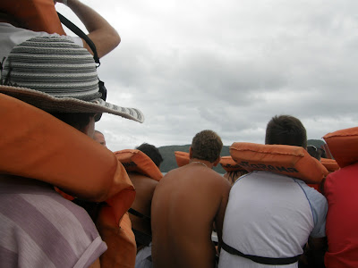 Quase todo mundo de colete salva-vidas.