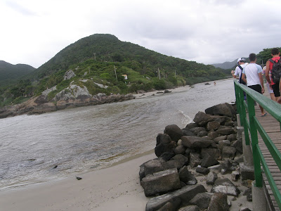 Um pequeno rio deságua no mar, bem ao lado de onde saem os barcos para a Ilha. Florianópolis é linda demais!! Bem que dizem que Deus estava desenhando o litoral brasileiro com todo capricho, em Santa Catarina desenhou um litoral com tanta inspiração, que quando chegou no litoral do Rio Grande do Sul desabafou: "cansei!" e fez um risco reto até o final!