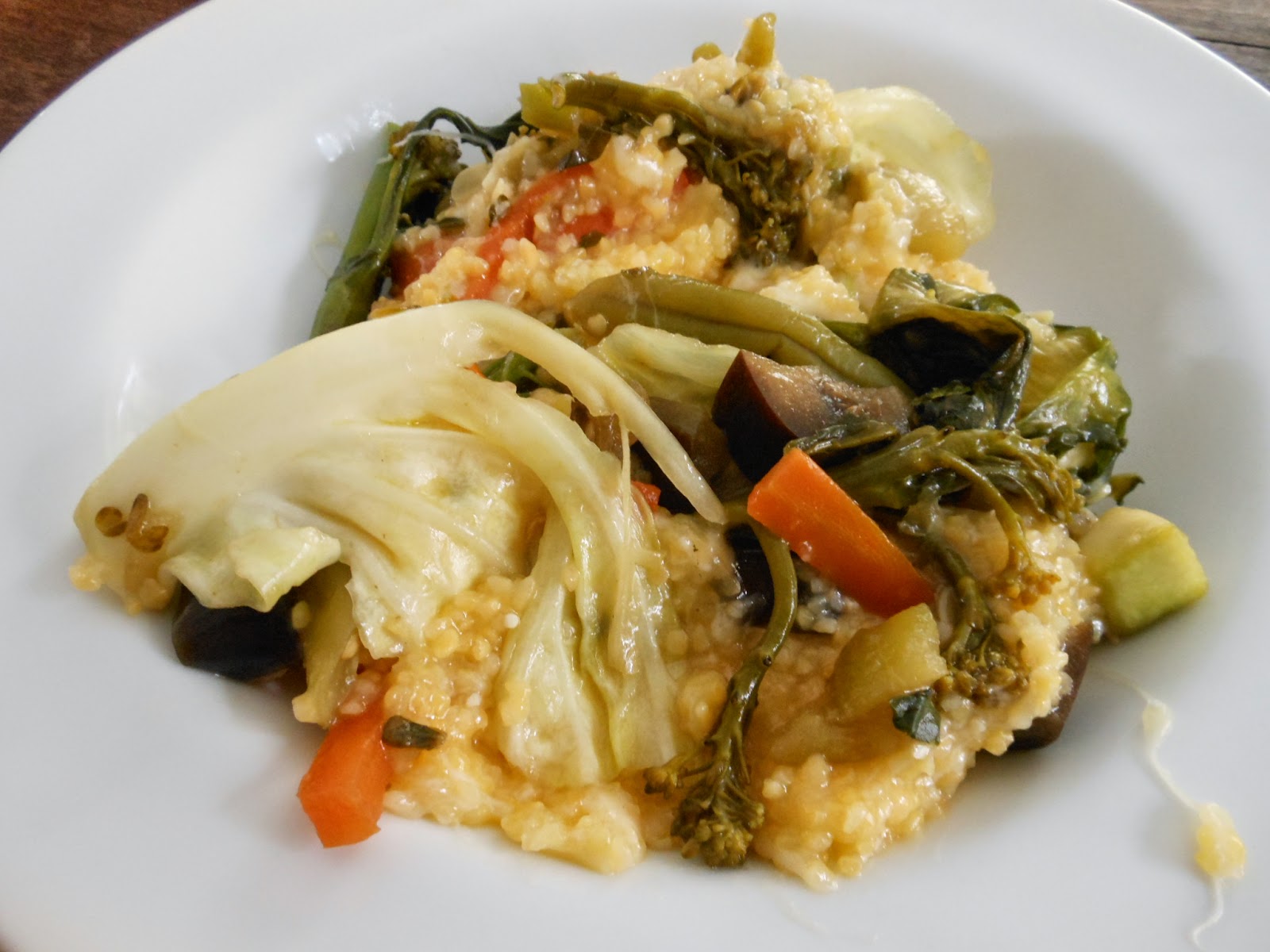 Outra coisa que fiz e fazia um bom tempo que não preparava foi a Gororoba, o segundo prato tradicional do Recanto! A Gororoba consiste num tipo de polenta feita com aquela canjiquinha de milho, que eu conheço como quirela, ou milho para passarinho mesmo, com legumes refogados. Uma delícia!
