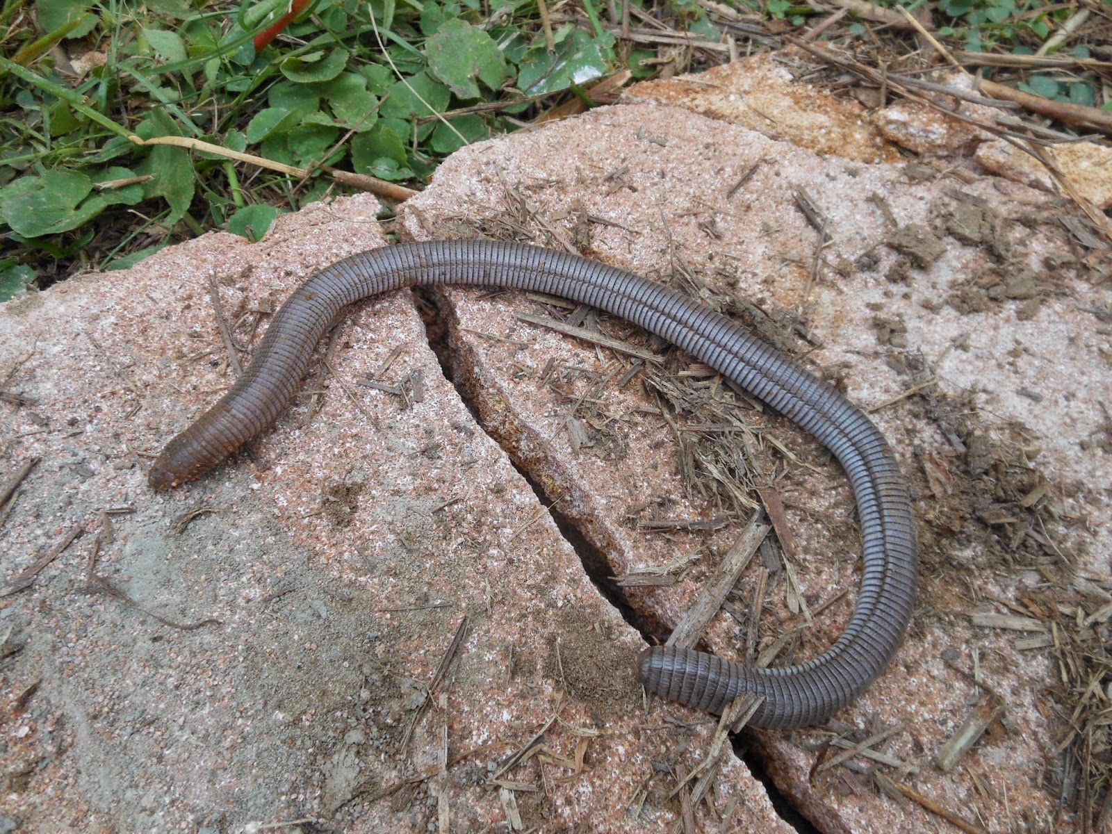 Durante a obra, fazendo um buraco, o Giba, um dos pedreiros, encontrou uma cobra-cega. Não sei por que ela tem este nome porque ela tem olhinhos e parece enxergar muito bem. Ela gosta de ficar enterrada, talvez a claridade lhe faça mal. Obviamente, não fizemos nada contra ela, apenas a trocamos de buraco.