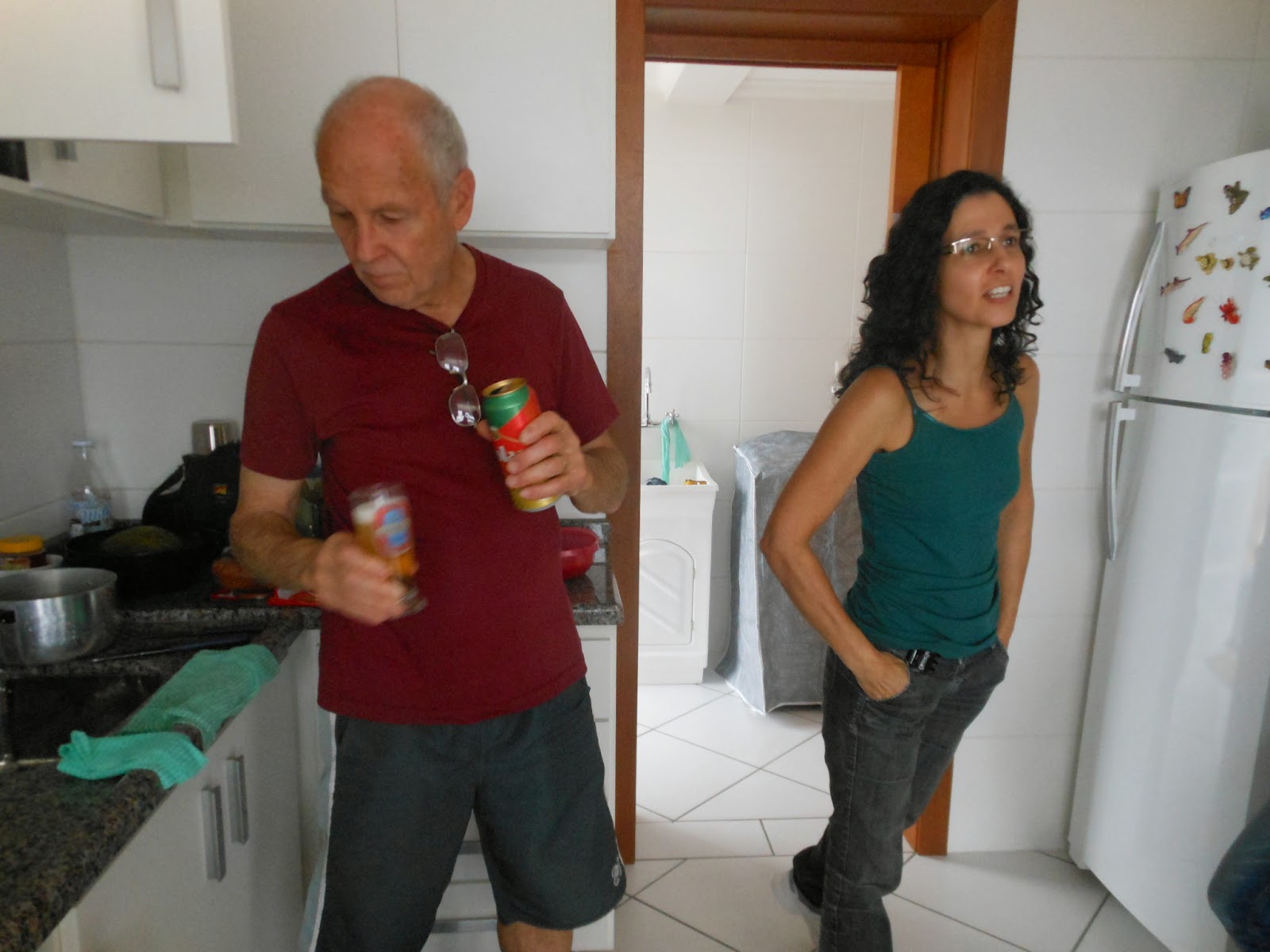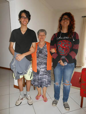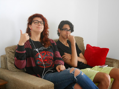 Eu não via meus sobrinhos desde março, quando vieram a Porto Alegre para o casamento da minha prima, Marília. Não é muito tempo, mas levei um susto quando vi os dois na porta do apartamento. Em março, Marina estava com o cabelo liso, apenas com uma mecha vermelha, não todo vermelho como agora, e sem piercing no nariz. Acho que o Marco ainda não estava maior que a Marina, estava pouca coisa menor, mas agora ele passou dela! Ah, e nenhum dos dois estava usando óculos de grau.