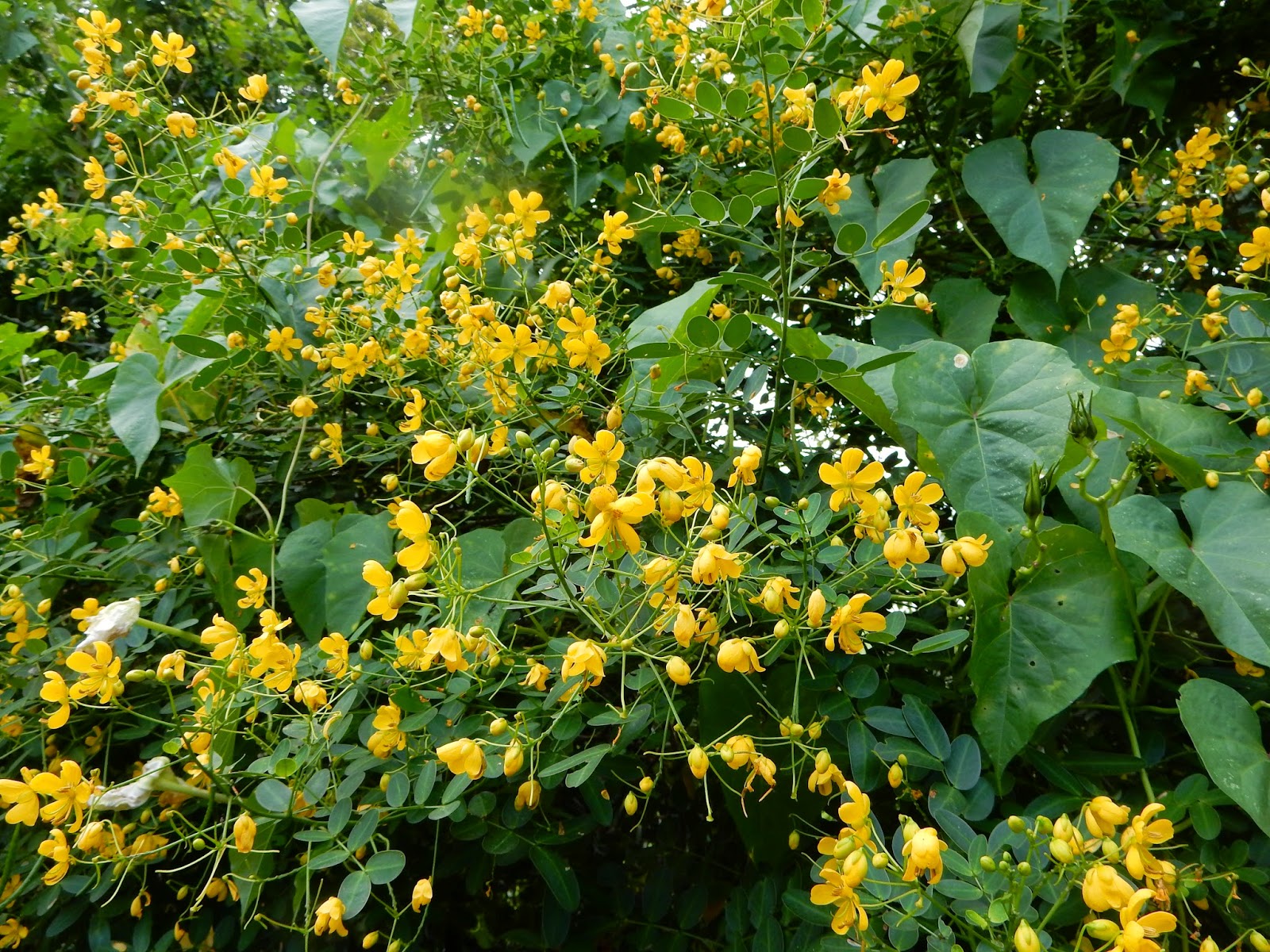 As alamandas do lado de dentro e do lado de fora, as lantanas.