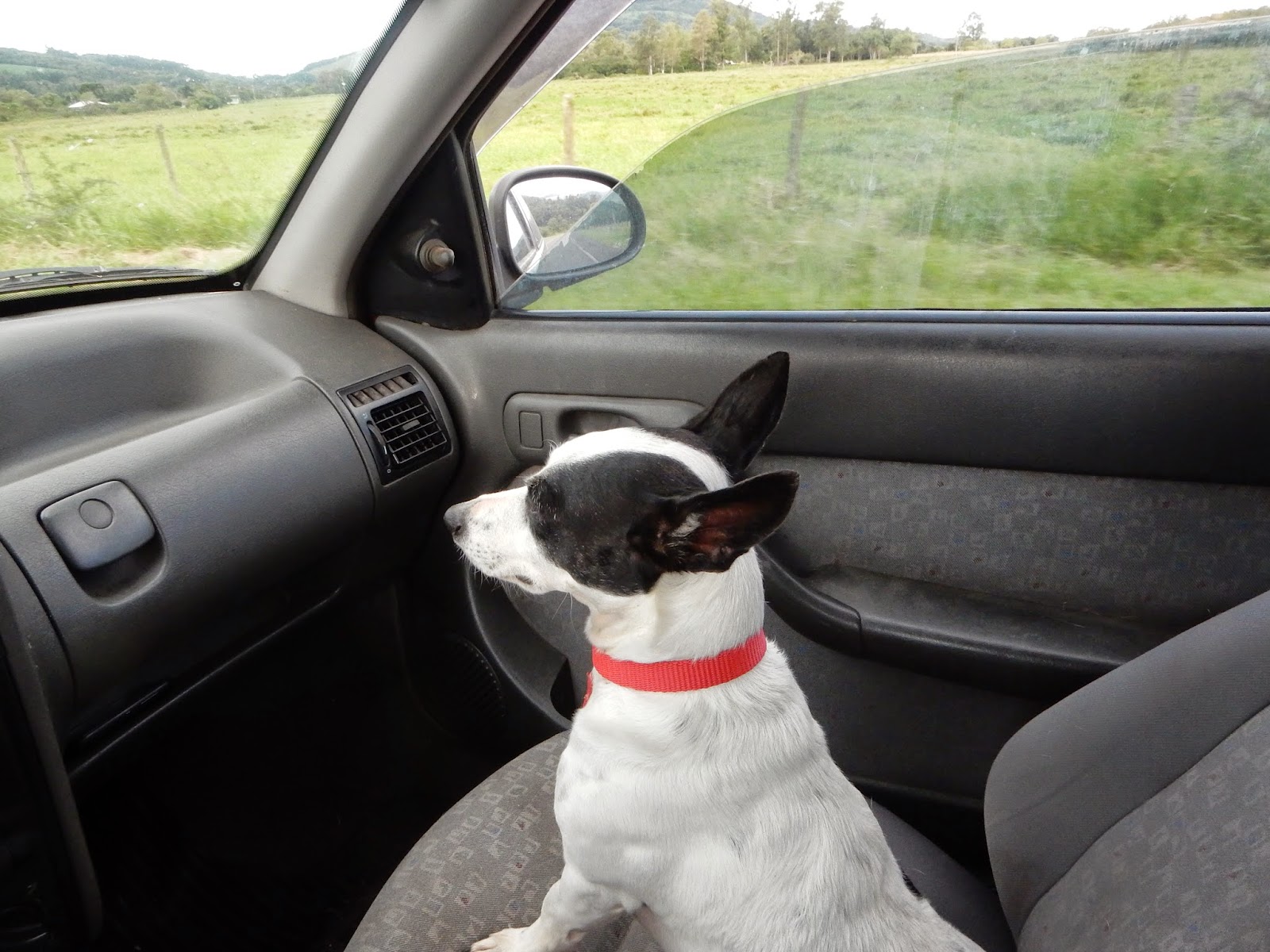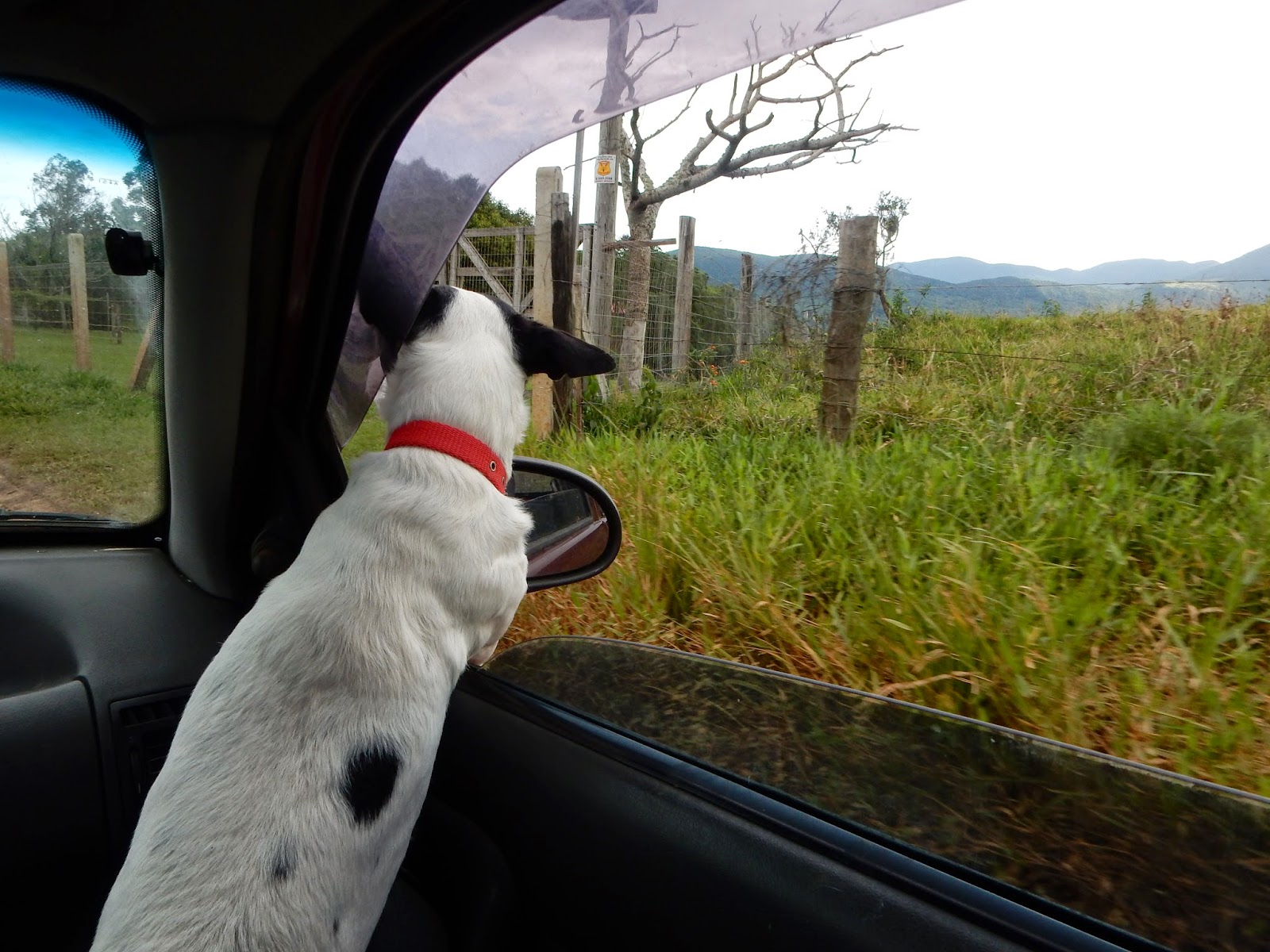 Só desamarrou o burro quando chegamos na estrada de acesso ao Recanto, onde ele pode colocar a cabeça para fora do carro para sentir todos os cheiros possíveis.