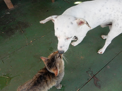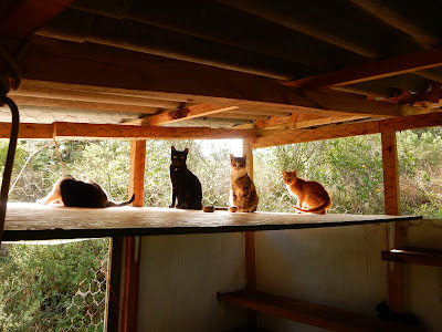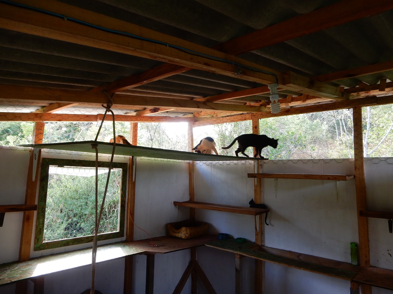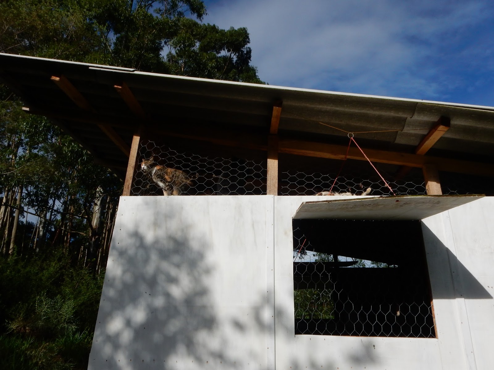 Os gatos sentiram muito a mudança. Em Porto Alegre eles ficavam presos dentro de casa mas tinham a nossa companhia o tempo todo. No Recanto eles estão presos no gatil, que deveria ser apenas um abrigo, pois a ideia era que eles ficassem soltos, o que não aconteceu porque chegaram a Olívia, Paçoca e Feliska, que não gostam de gatos.