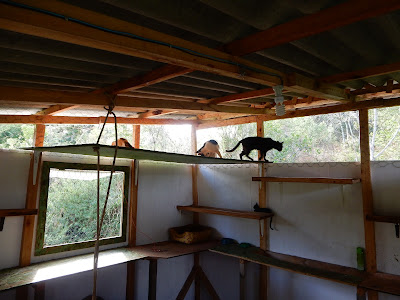 Na semana passada, Leonardo colocou uma proteção anti-chuva e os gatos adoraram, pois ganharam mais um piso. Esta coisa preta aí em cima é a terrível, Silene Seagal!