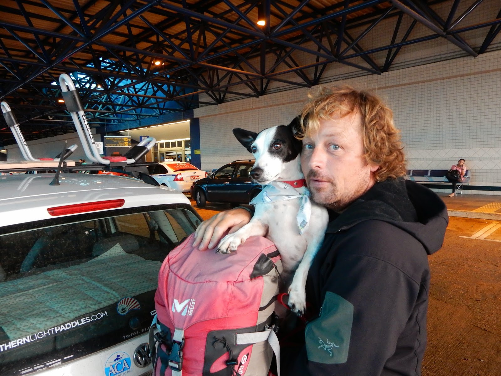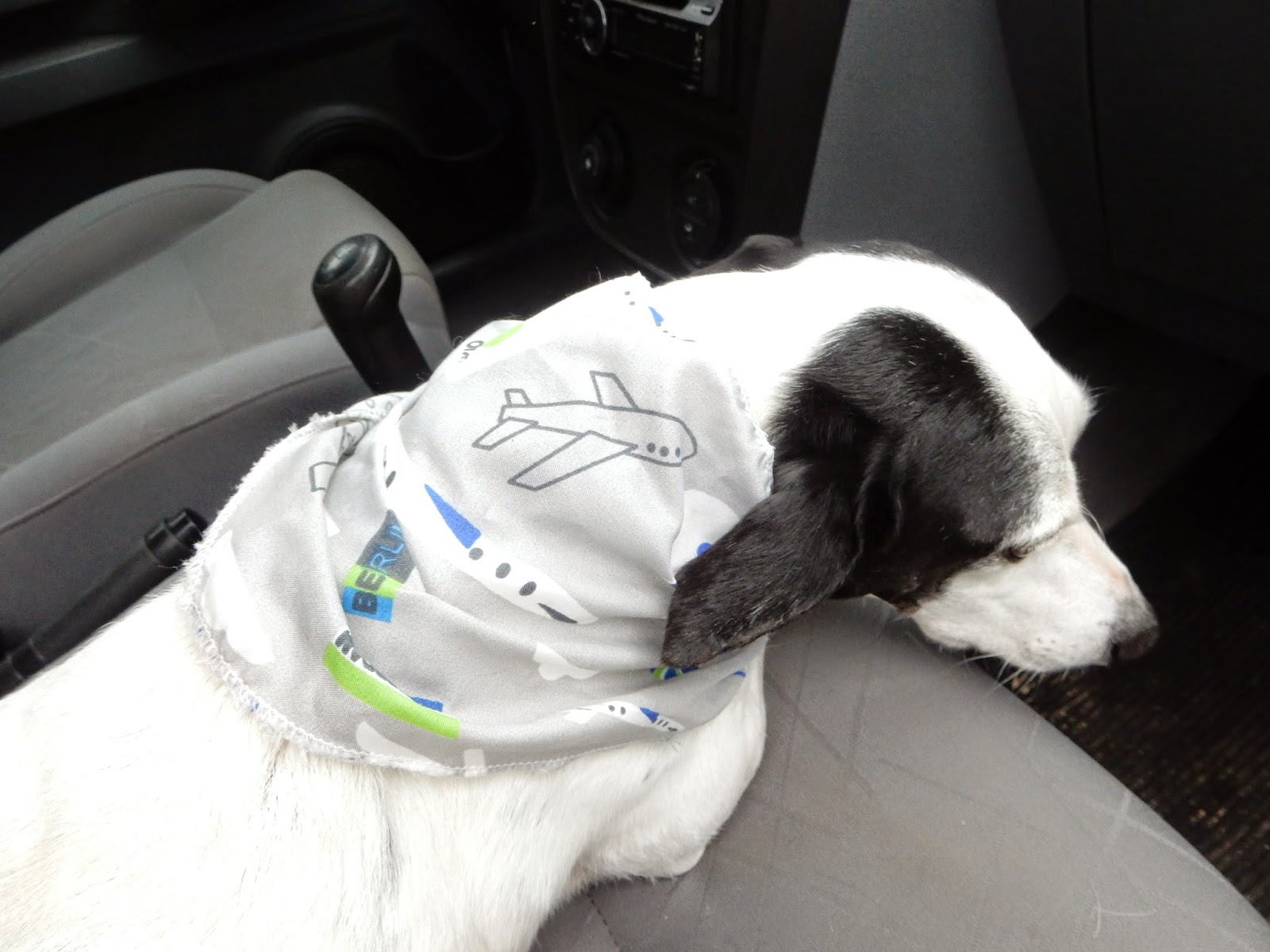 No domingo, Tombinho foi o primeiro a entrar no carro para ir a Porto Alegre, levar o pai no aeroporto. E estava a rigor, com bandana de aviõezinhos!