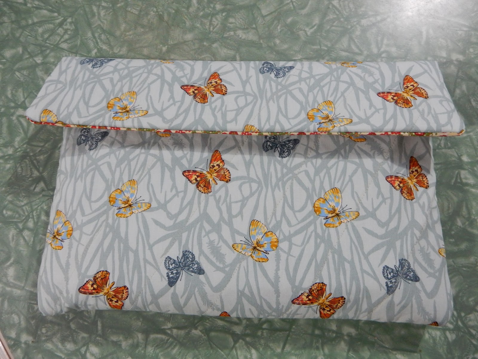 O primeiro projeto que saiu da caixa para ser finalizado, não era dos mais antigos. Tenho coisas inacabadas há anos!!! Este, estava parado há uns dois meses e foi um pedido da minha mãe, que comprou o tecido e pediu que eu fizesse uma capa para o netbook dela.