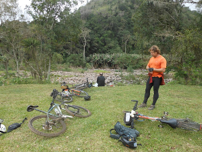 Em seguida, a estradinha acaba numa escola com um campo, na beira do rio. Fizemos mais um rápido lanche ali. Leonardo e Trieste subiram nas bicicletas em seguida, e trataram de pegar o caminho de volta até os carros.