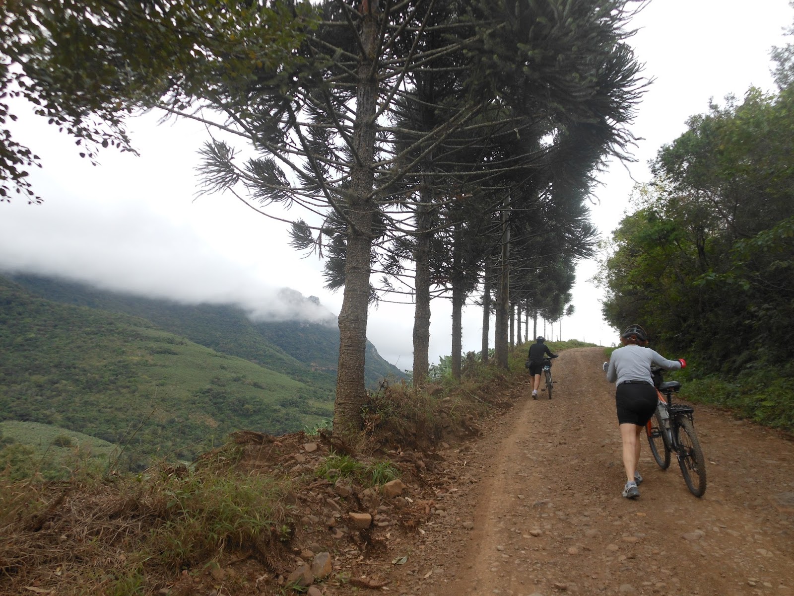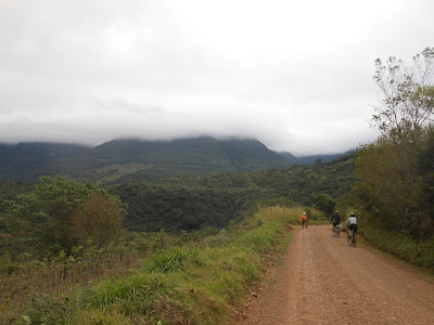 A convite dos amigos Maria Helena e Trieste, no domingo, Leonardo eu fomos pedalar em Praia Grande - SC. A ideia era descer a Serra do Faxinal e pedalar até o vale da Mãe dos Homens, mas a Serra estava completamente fechada pela neblina então, decidimos pedalar apenas até o vale.