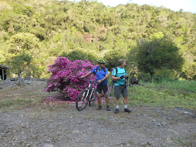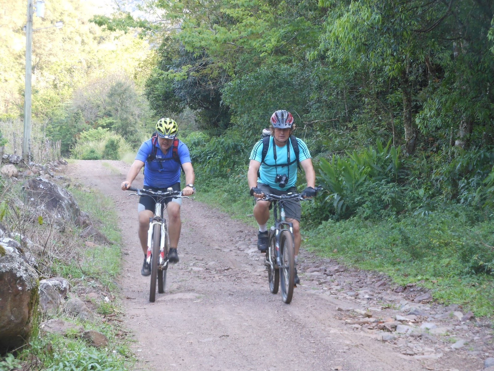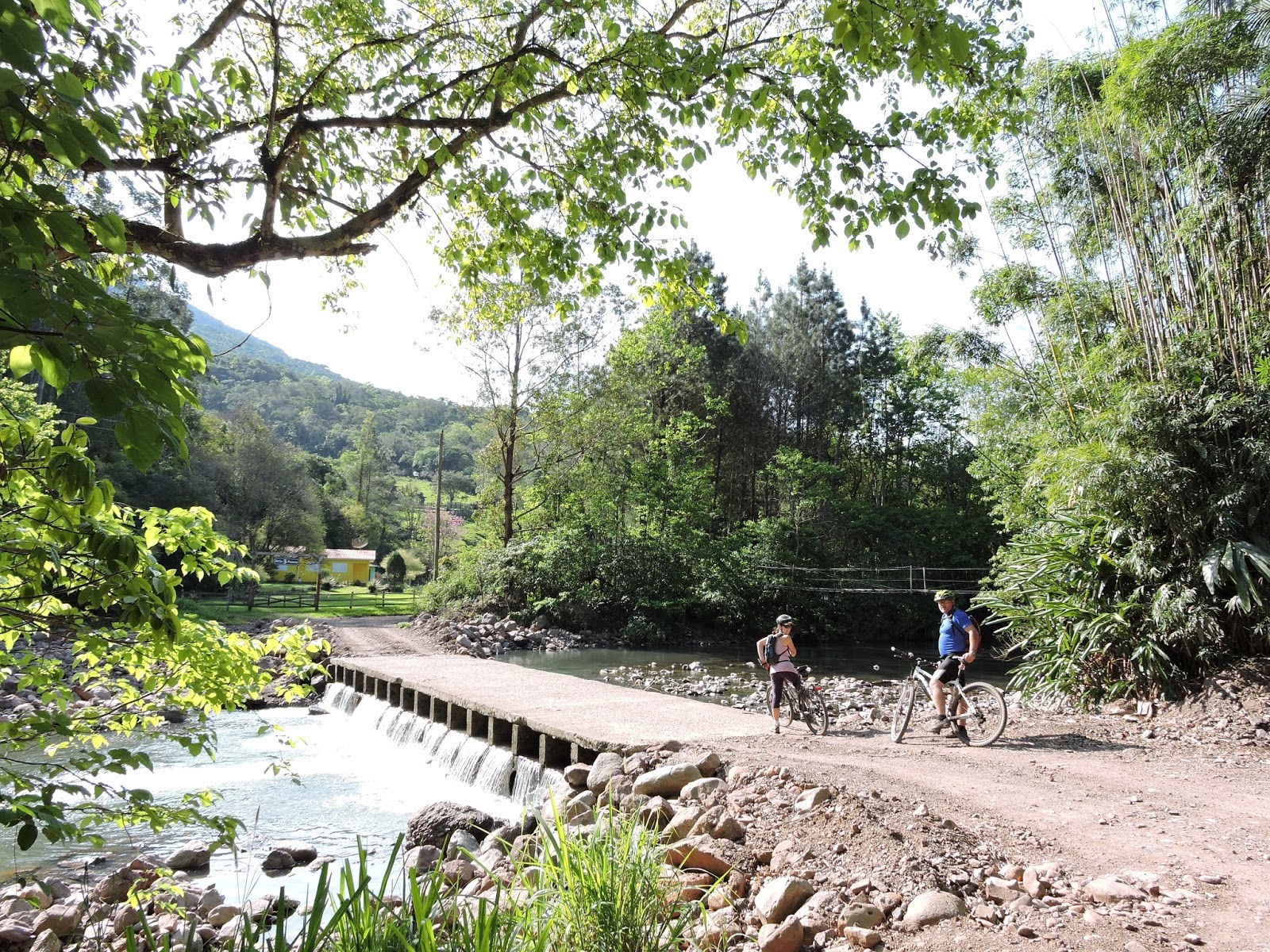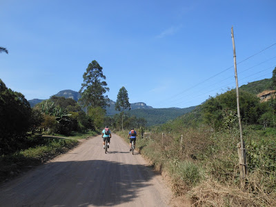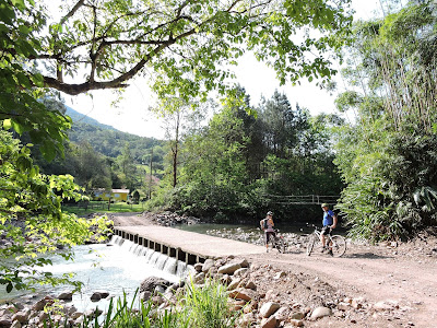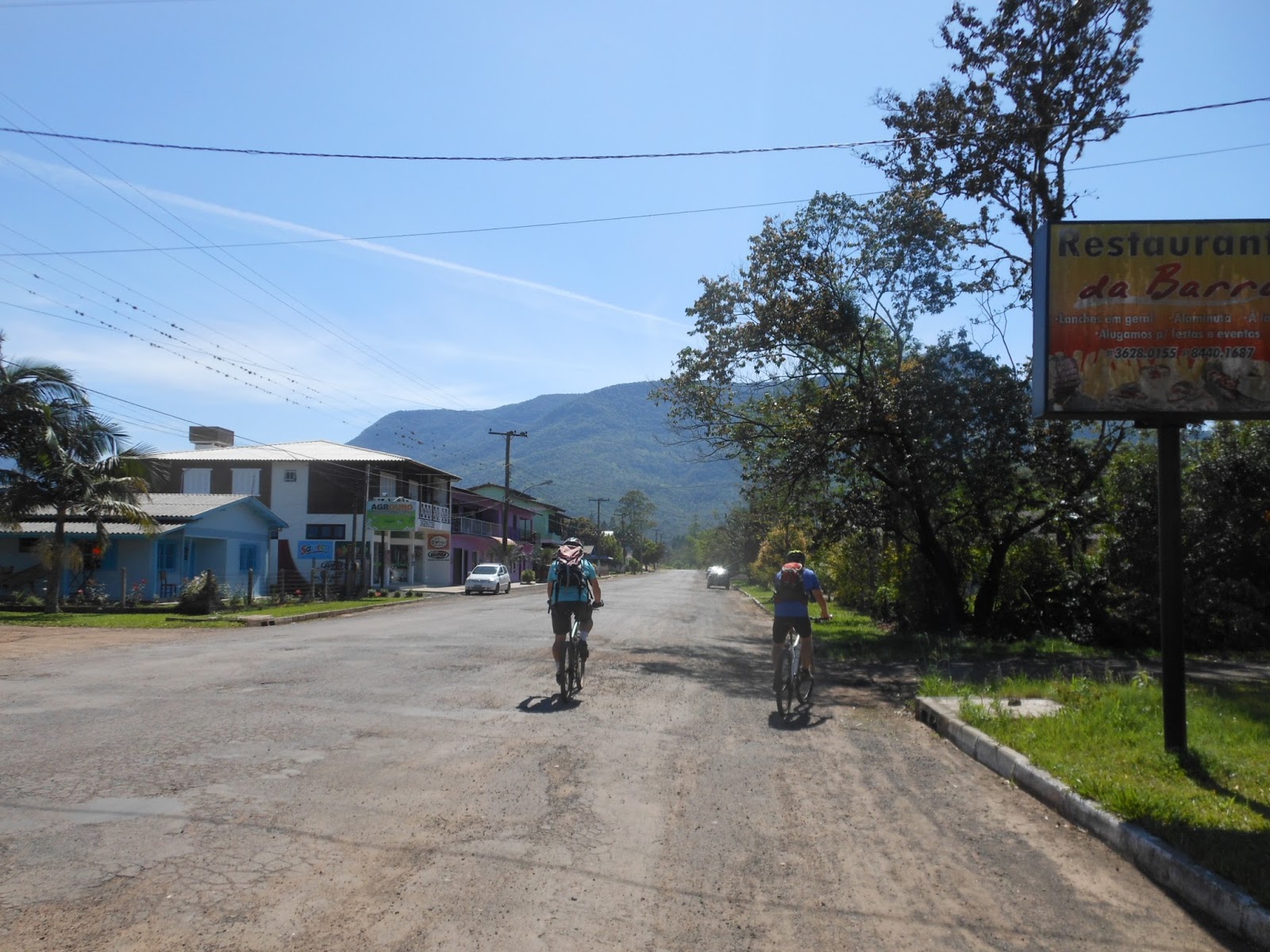 A conversa e a sombrinha do Kioske estavam tão agradáveis, que tivemos que nos esforçar para trocar as cadeiras do kioske pelos bancos das bicis, mas criamos coragem e pegamos a estrada para o Garapiá.