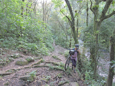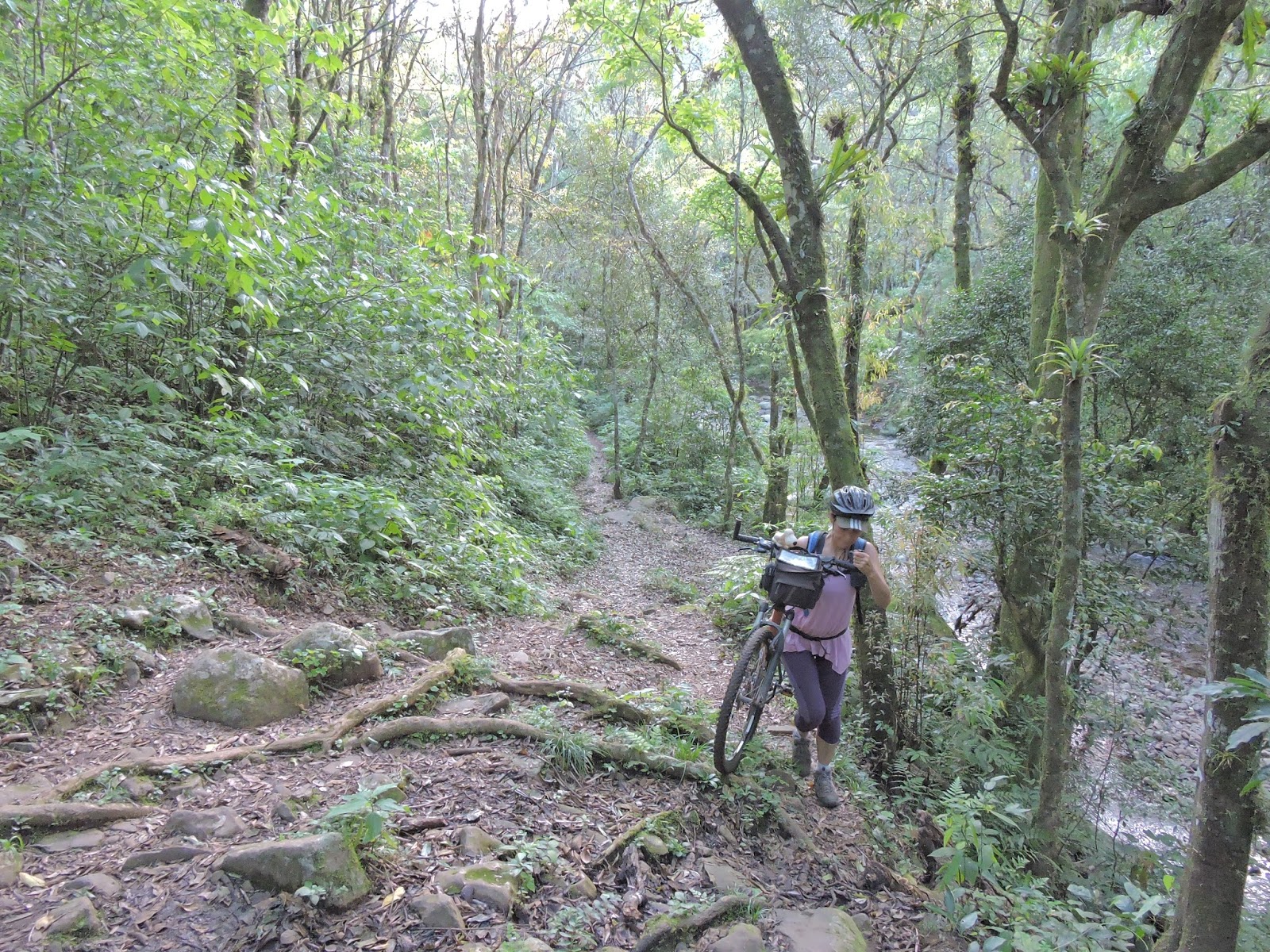 Além de ser uma subida, haviam pedras e raízes no caminho.