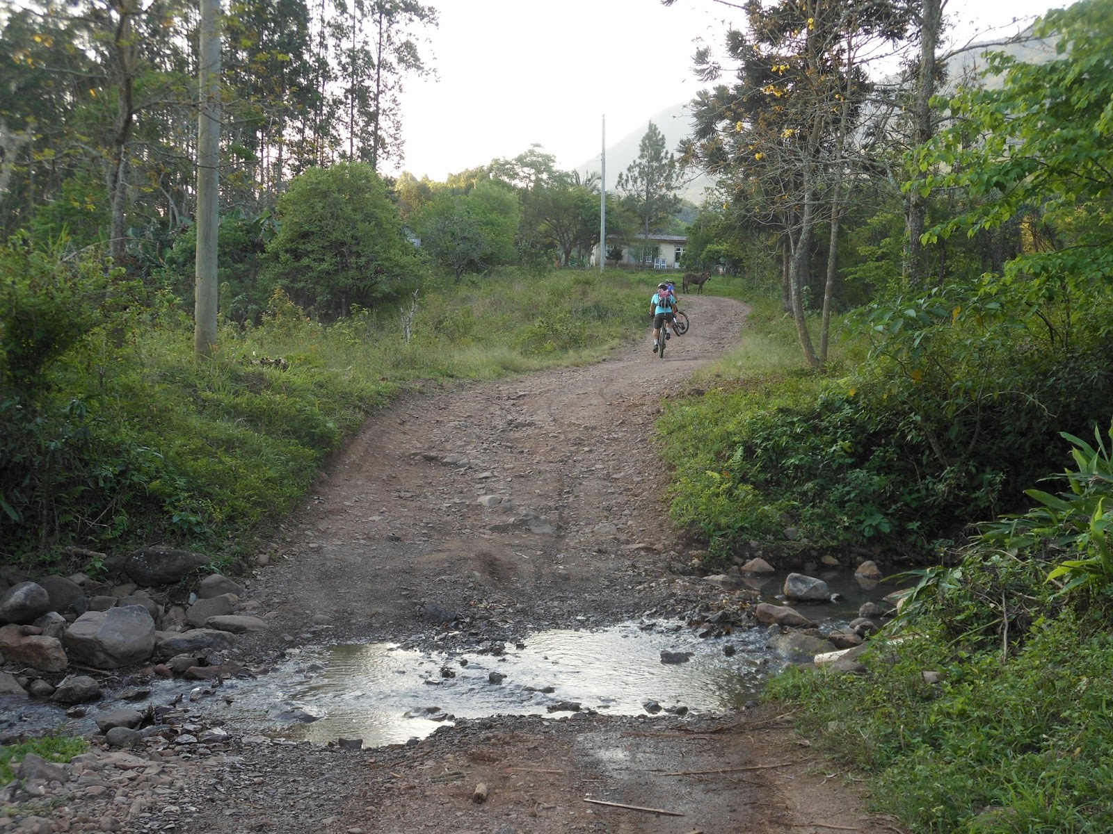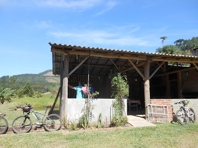 Esta é a casa do nosso amigo Tiago, que mora na Barra do Ouro, um distrito de Maquiné. Nossas casas ficam longe, acho que uns 20 km uma da outra por isso, para não perdermos tempo e não precisar sair de casa tão cedo, Leonardo e eu fomos de carro até a casa do Tiago e de lá, saímos os três de bicicleta para conhecer a famosa Cascata do Garapiá.