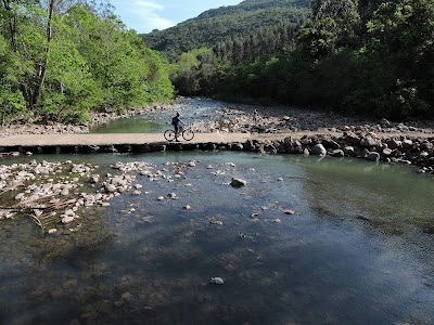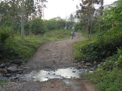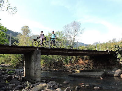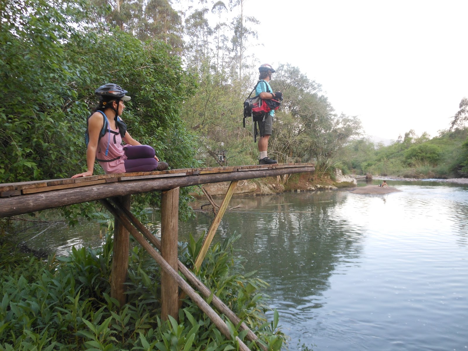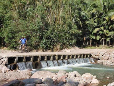 "Pela estrada a fora eu vou pedalando..." E fomos pedalando até chegar na sétima ponte, que não tem foto porque nesta, acabei molhando os pés e por pouco, não me molhei toda, por culpa do chevettinho que morreu bem em cima da ponte. Tentei passar pedalando mas não deu e quase caí!