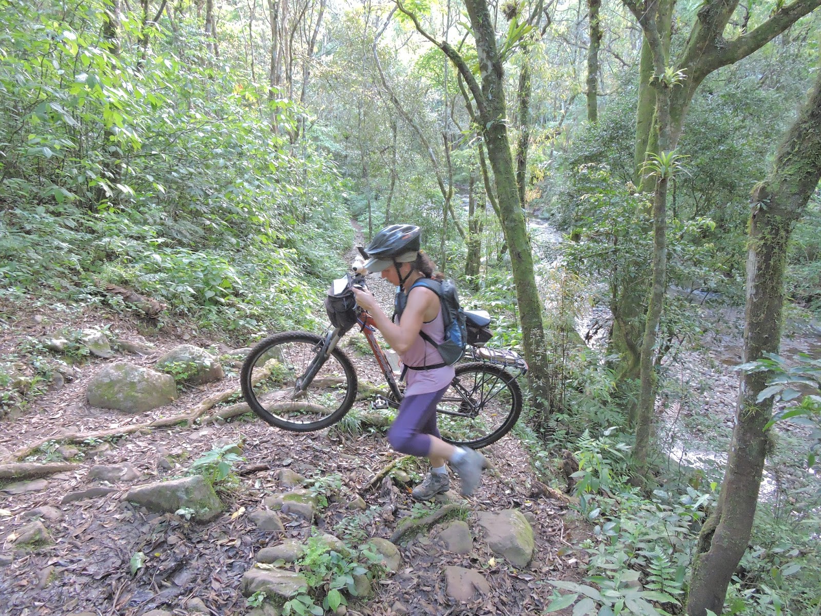Leonardo ainda foi pedalando mais um pouco, mas eu e Tiago começamos o empurra-bike.