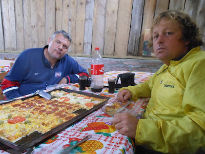 Desta vez, tivemos a companhia da filha e do netinho do seu Dilo. E a pizza, que achávamos que era demais para nós, pouco sobrou.