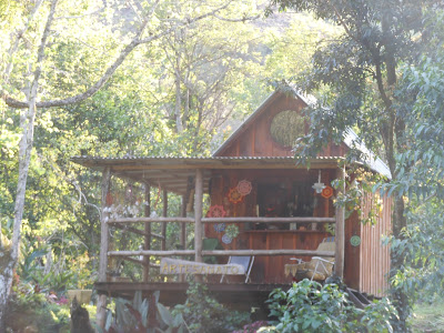 No redor da Cascata tem alguns estabelecimentos. Não sei se daria para chamar assim... tem esta casinha com artesanato, que está dentro da área da foto acima desta, e que também tem cabanas para alugar. E tinha uma casinha de chá que estava fechada, um bar que vendia pastéis e também tinha cabanas, ou local para camping, não lembro. Mas é tudo bem alternativo, as pessoas que frequentam me pareceram beeem alternativas...