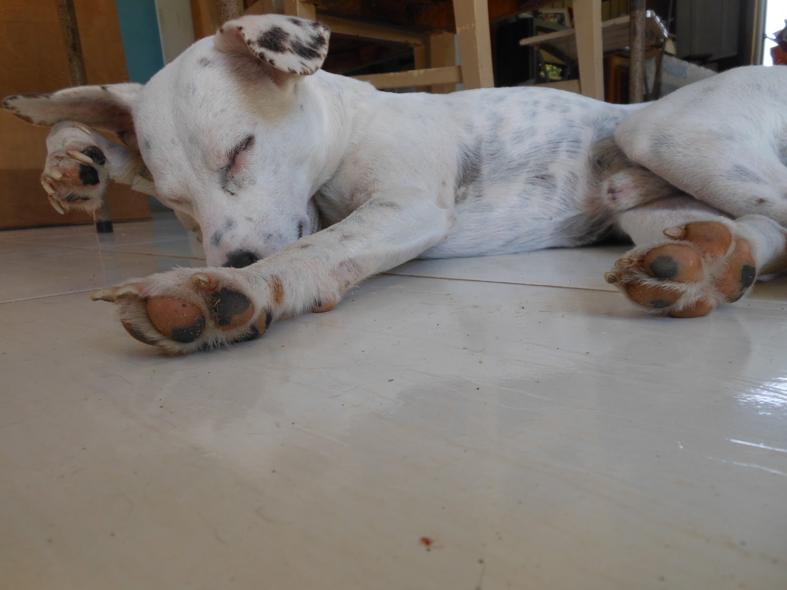 Olha a patinha "machucada" encima da outra. Nem parece que tem defeito.