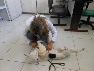 Recebendo atenção da veterinária.