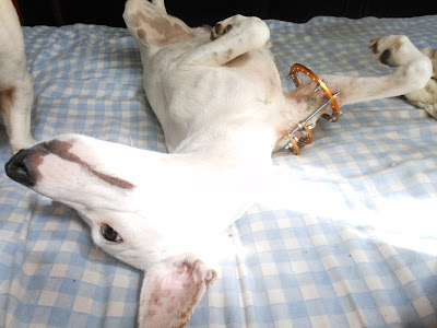 Mesmo assim, era só ver eu separando as gazes, soro e os remédios, que ele já deitava de barriga pra cima para deixar eu trocar o curativo.