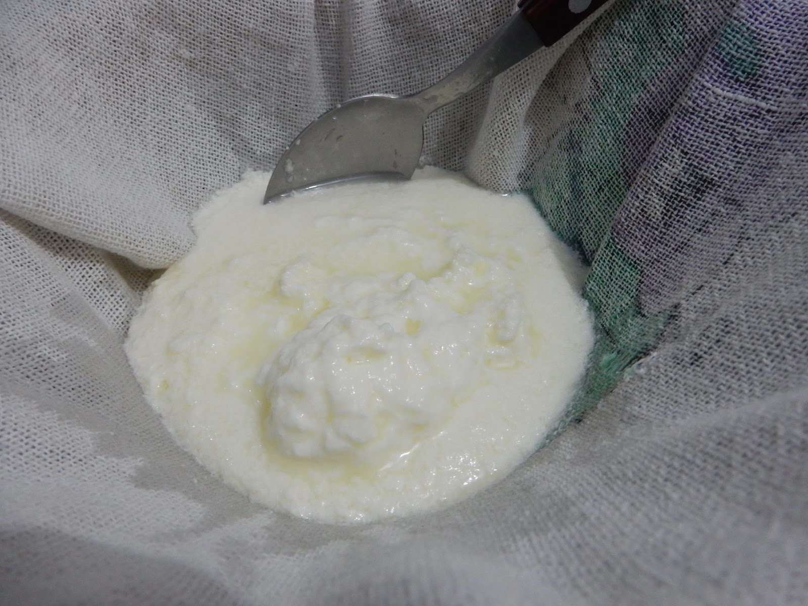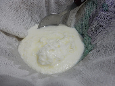 Passar a coalhada por uma peneira.