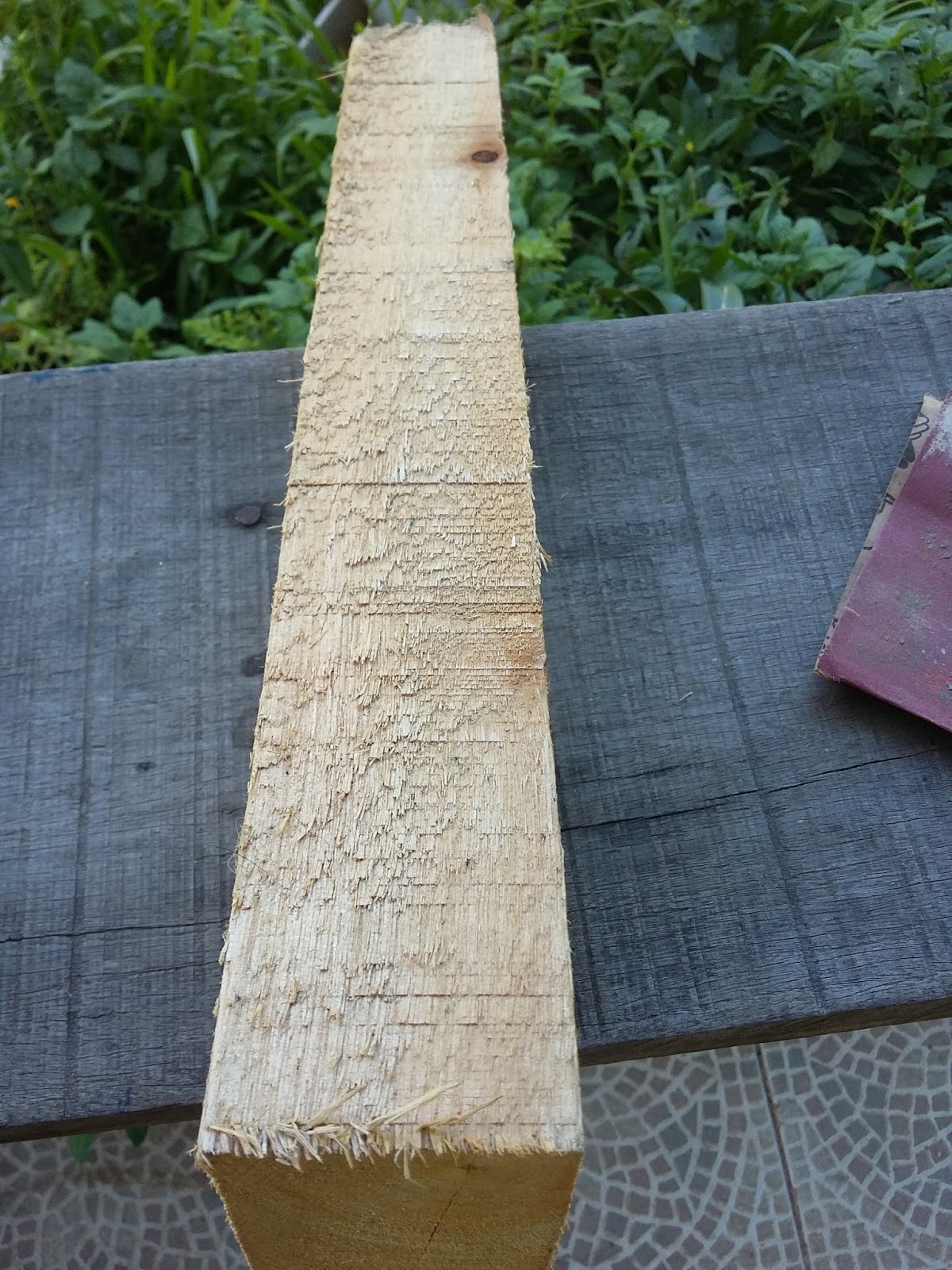 Adoro ver a madeira depois de lixada. Olhem só, a diferença! Isto, que não caprichei muito!