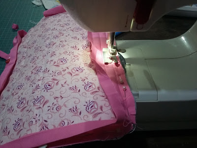 Ela mora em Florianópolis, não sei quando vou entregar mas resolvi fazer logo. Ela mandou um link com o passo-a-passo e me pareceu fácil de fazer. Ela mesma faria num piscar de olhos, se tivesse máquina e tempo, pois ela costura muito bem, já fez bastante coisas, roupas inclusive, o que acho bem difícil!