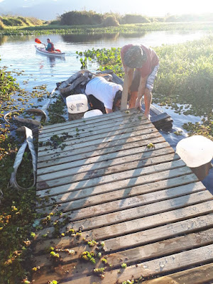 O tempo passou e o trapiche foi se estragando. Há algum tempo que precisávamos reformá-lo e com a Remada de Inverno se aproximando, esta preocupação foi aumentando. Leonardo não teria tempo para fazer isso sozinho e resolvi pedir ajuda para os amigos, criando um grupo no "whats" com os amigos de fé e que gostam deste tipo de empreitada, trabalho pesado e com madeira. Inicialmente, criei o grupo sem o Leonardo. Expliquei aos amigos a razão do grupo e só então, adicionei o Leonardo ao grupo. Foi uma surpresa que deu certo, pois os amigos não ajudaram apenas no trabalho braçal. A troca de ideias sobre como fazer esta reforma e o material a ser utilizado rendeu muito!