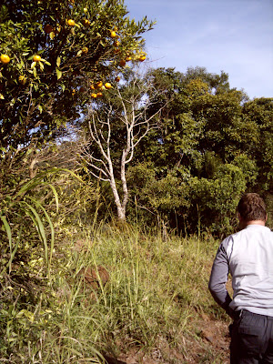 As bicletas ficaram "estacionadas" no meio do mato onde termina a plantação e começa o mato onde tem a trilha para subir até as Pedras. Esquecemos a corrente para prender as bicis então, tivemos que deixá-las soltas e torcer para que ninguém resolvesse passear com elas.