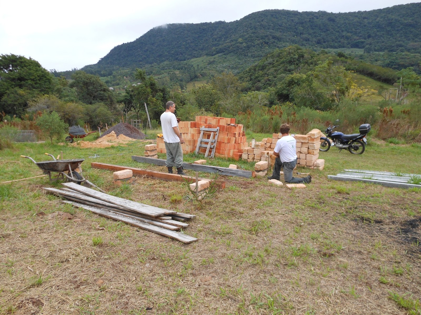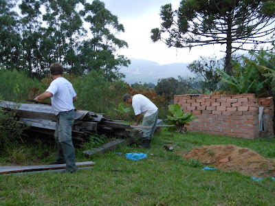 Depois do quarto pedido negado, não conseguimos trabalhar mais em cima desta questão, até que voltamos ao Recanto essa semana e chamei de novo os dois peões para dar continuidade a obra do barraquinho.