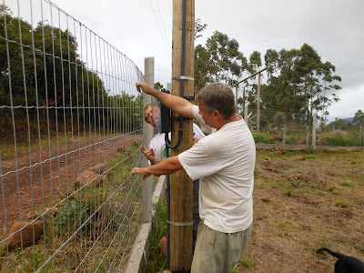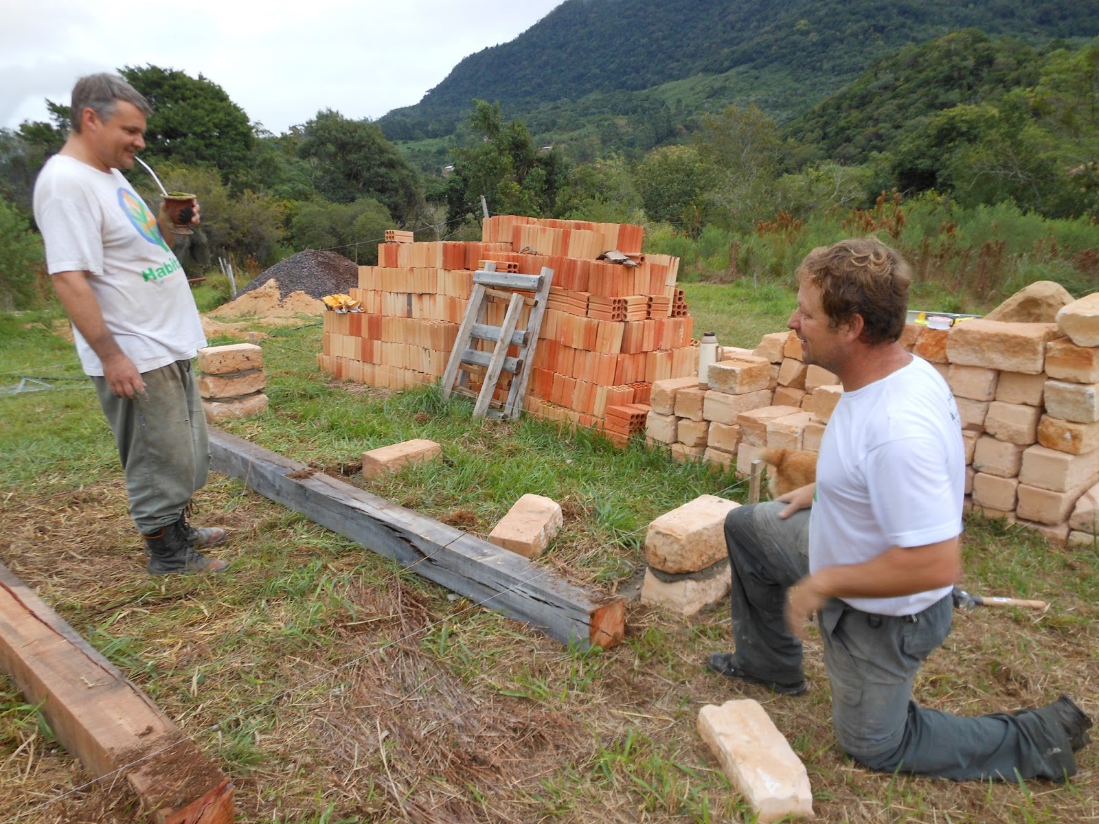 Entre um chimarrão e outro, o trabalho seguia. Deixei a cachorrada responsável pela fiscalização. Detalhe: a Kin, essa amarelinha da foto, é cega!