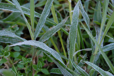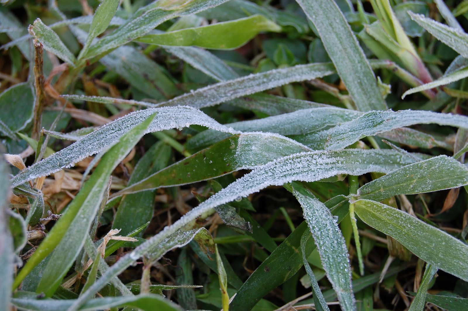 Geada na grama, de manhã cedinho.