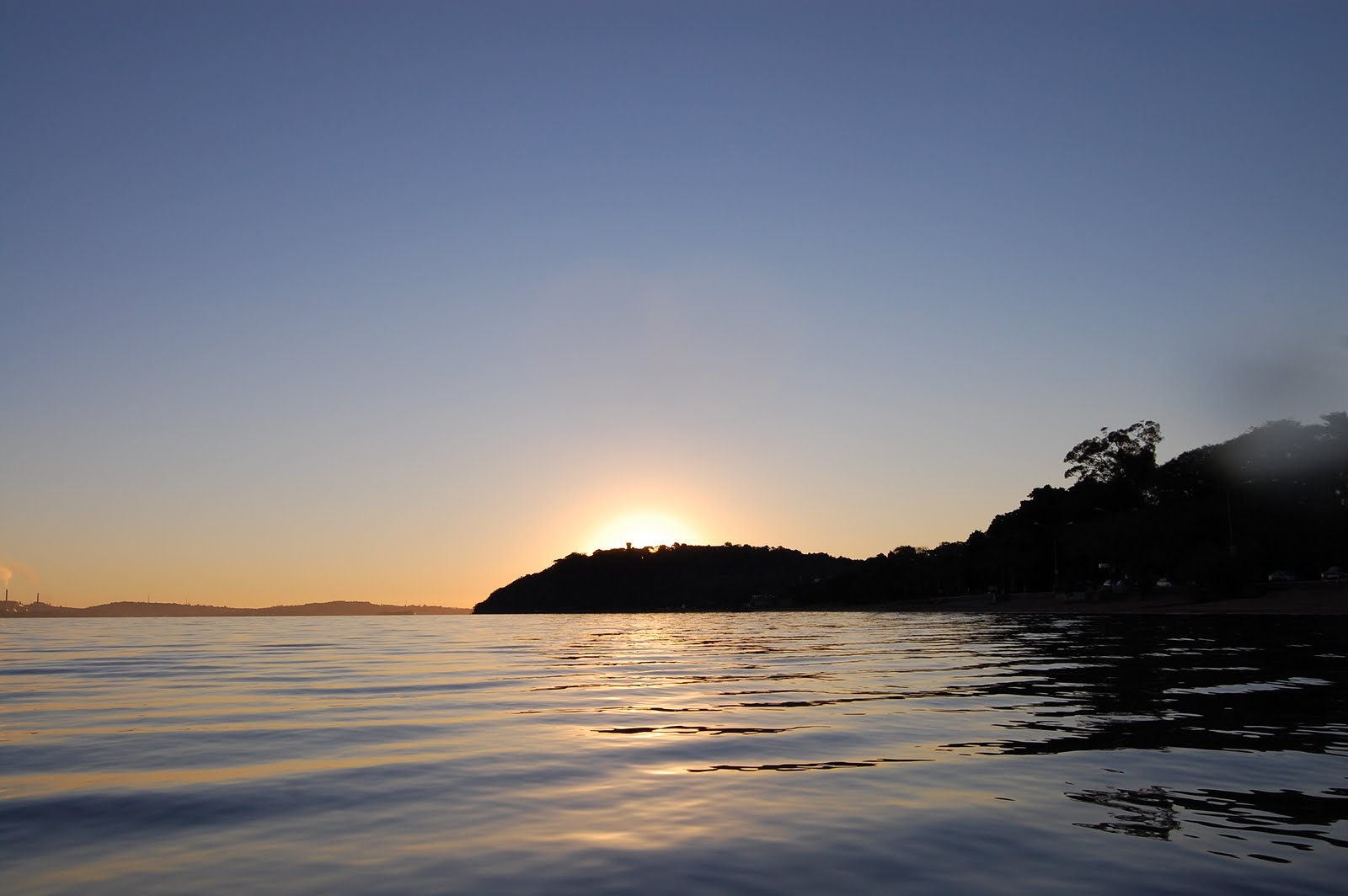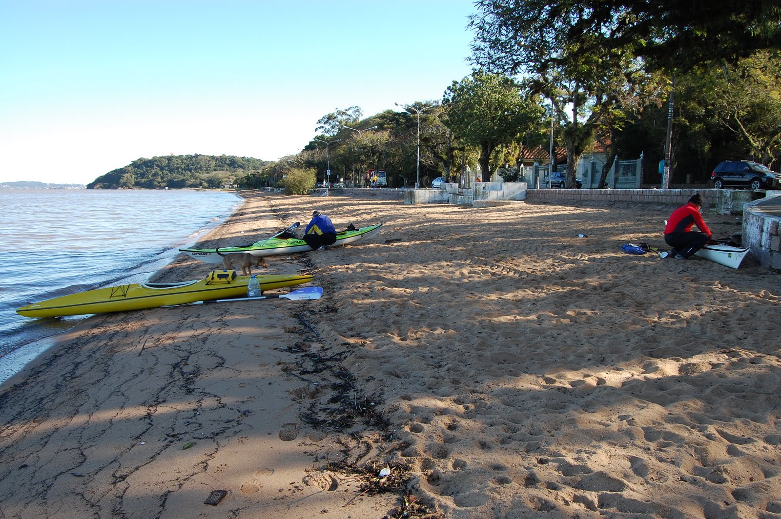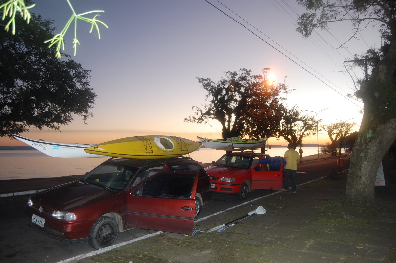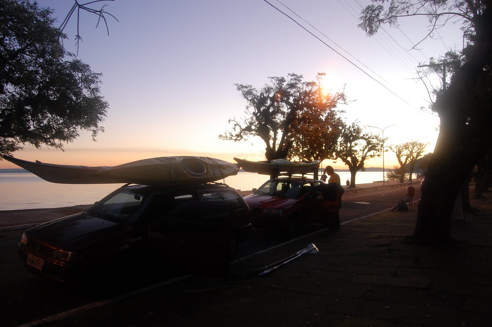 Do Gasômetro seguimos pela ciclovia da avenida Beira Rio passando pelo museu Iberê Camargo, Barra Shopping, Clube Veleiros até a Vila Assunção. Ali, onde imagino ser a Ponta do Dionísio, ficamos um pouco, admirando o pôr-do-sol, os veleiros parados no Clube Jangadeiros e lamentando pela chaminé da antiga Borregar, atual Aracruz Celulose, que funciona 24h por dia.