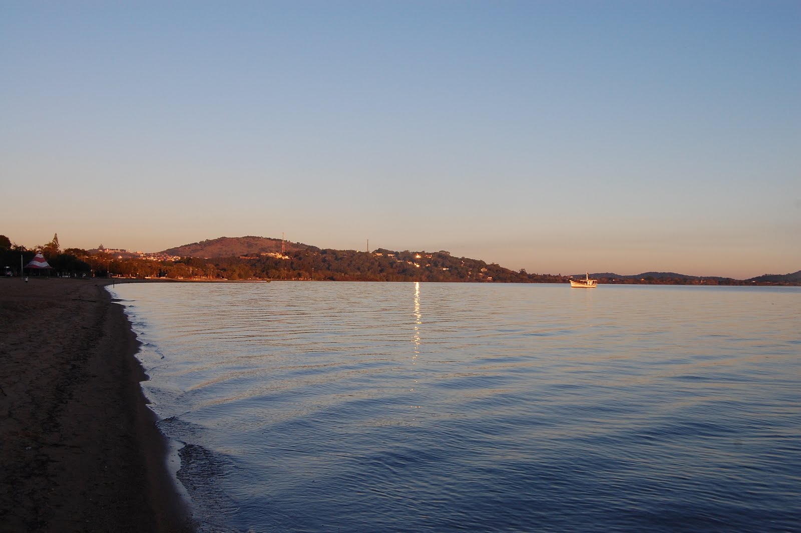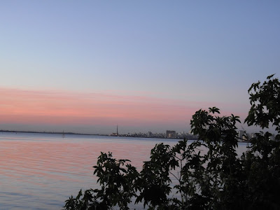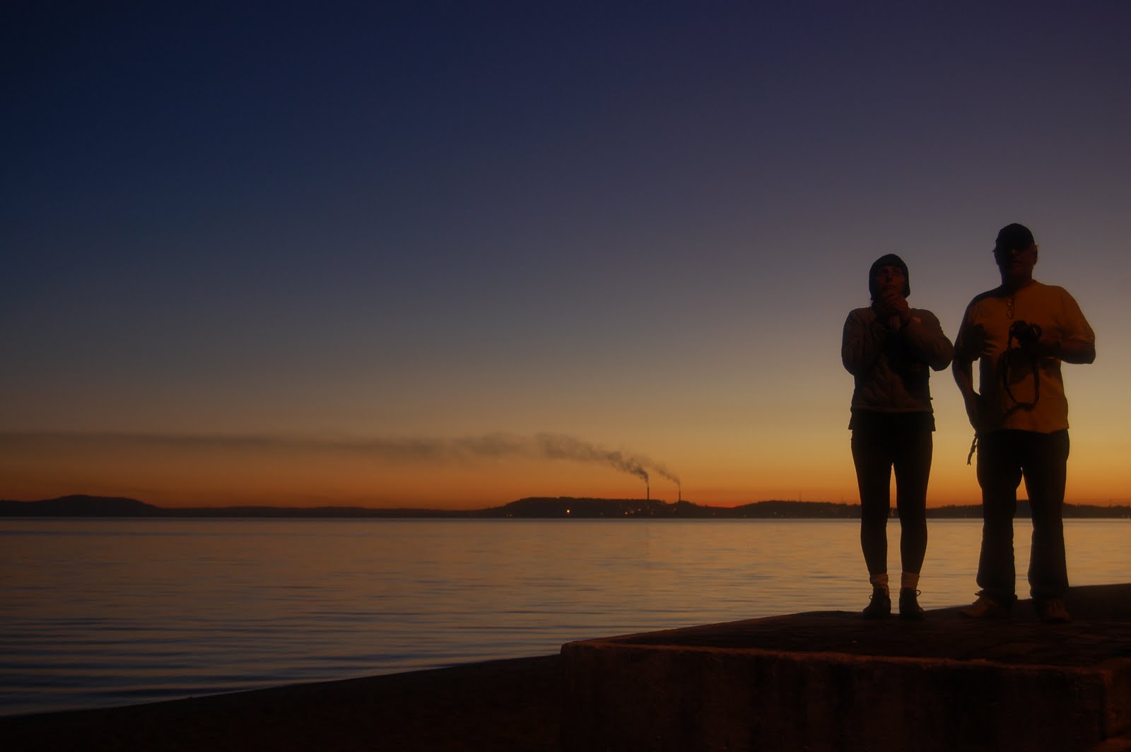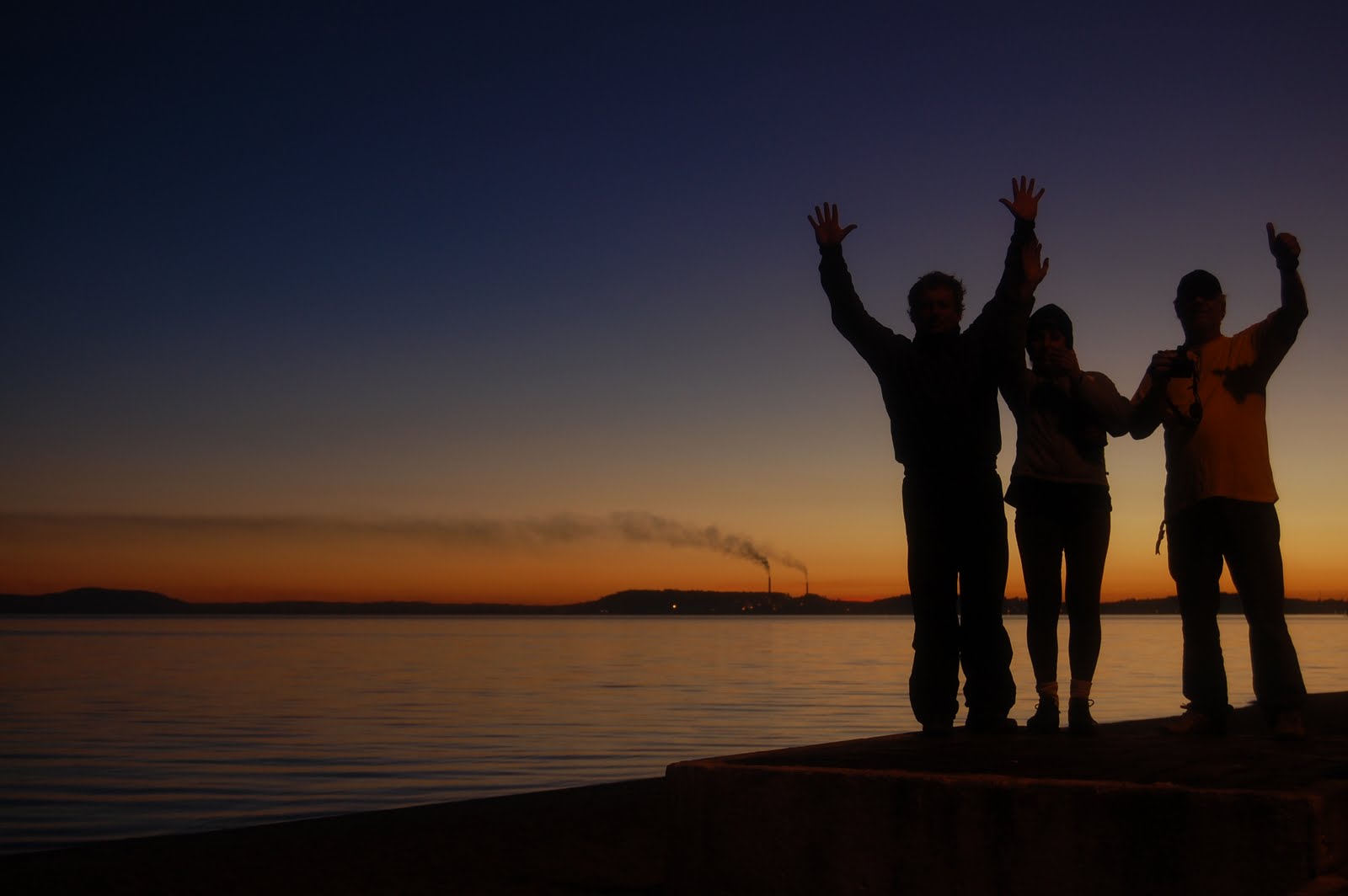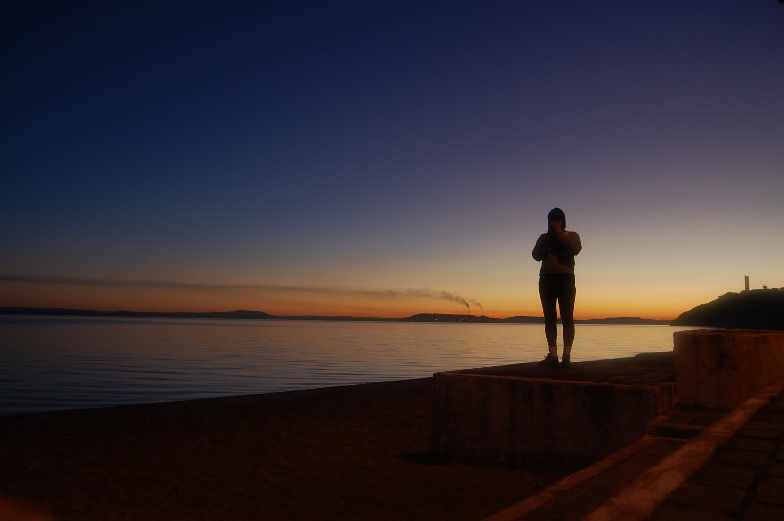 Do Gasômetro seguimos pela ciclovia da avenida Beira Rio passando pelo museu Iberê Camargo, Barra Shopping, Clube Veleiros até a Vila Assunção. Ali, onde imagino ser a Ponta do Dionísio, ficamos um pouco, admirando o pôr-do-sol, os veleiros parados no Clube Jangadeiros e lamentando pela chaminé da antiga Borregar, atual Aracruz Celulose, que funciona 24h por dia.