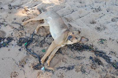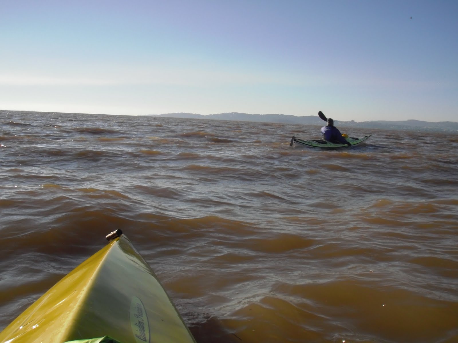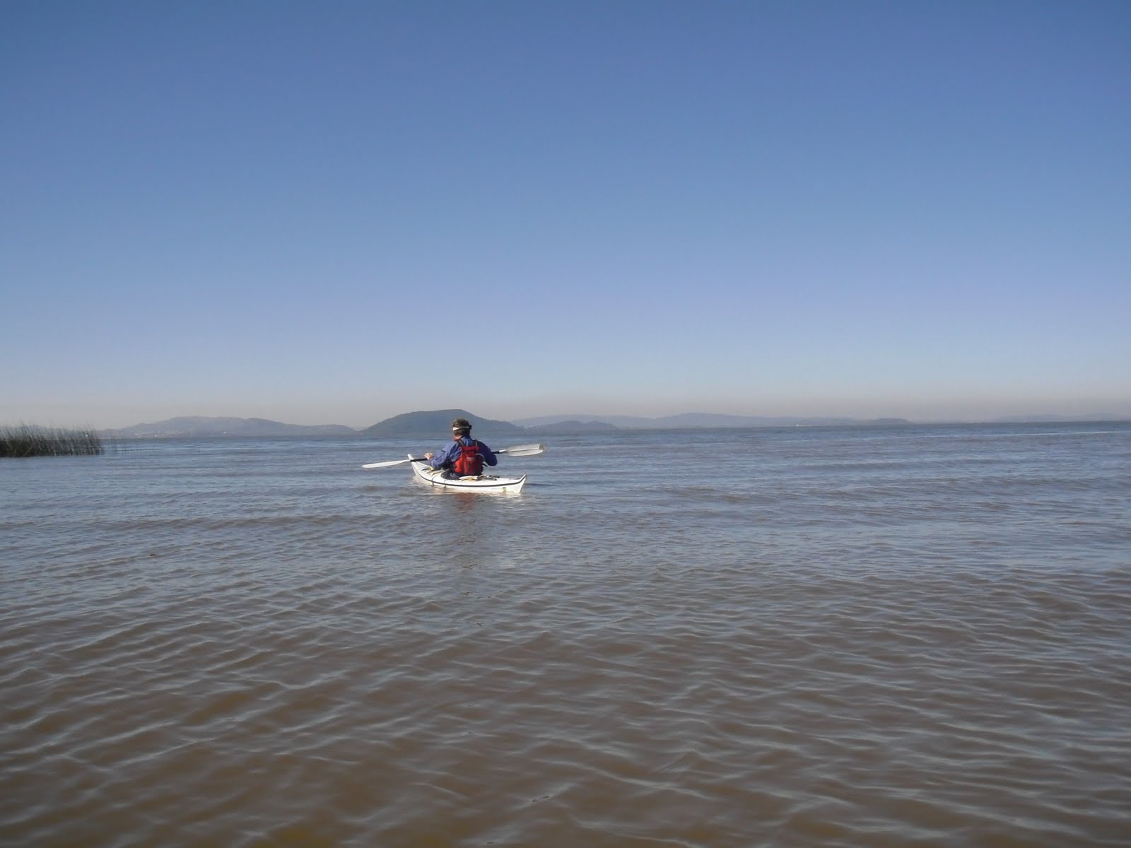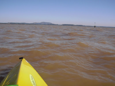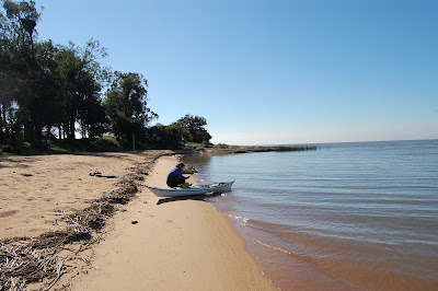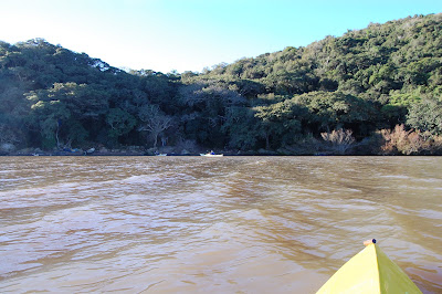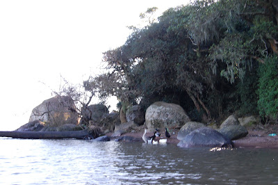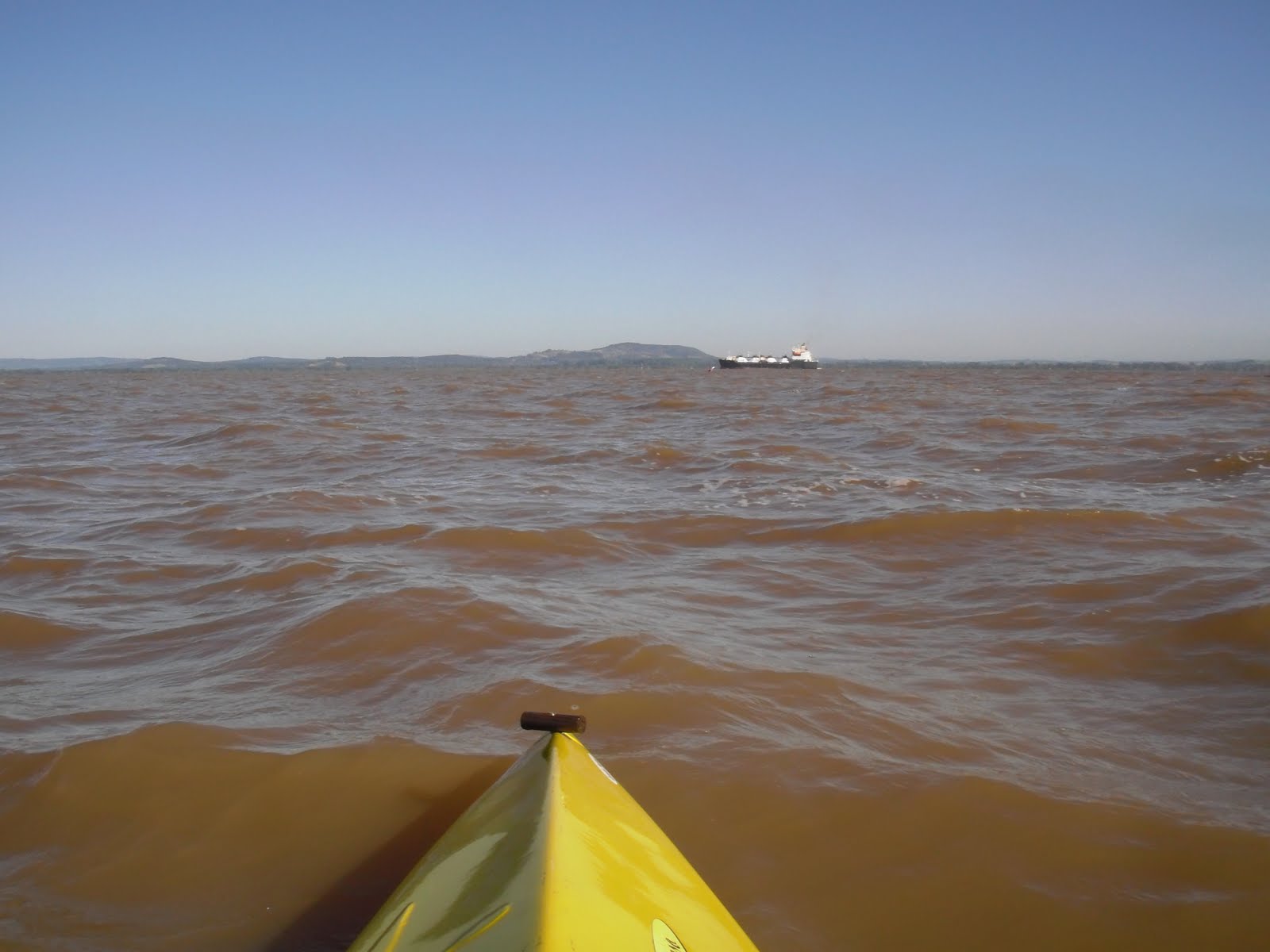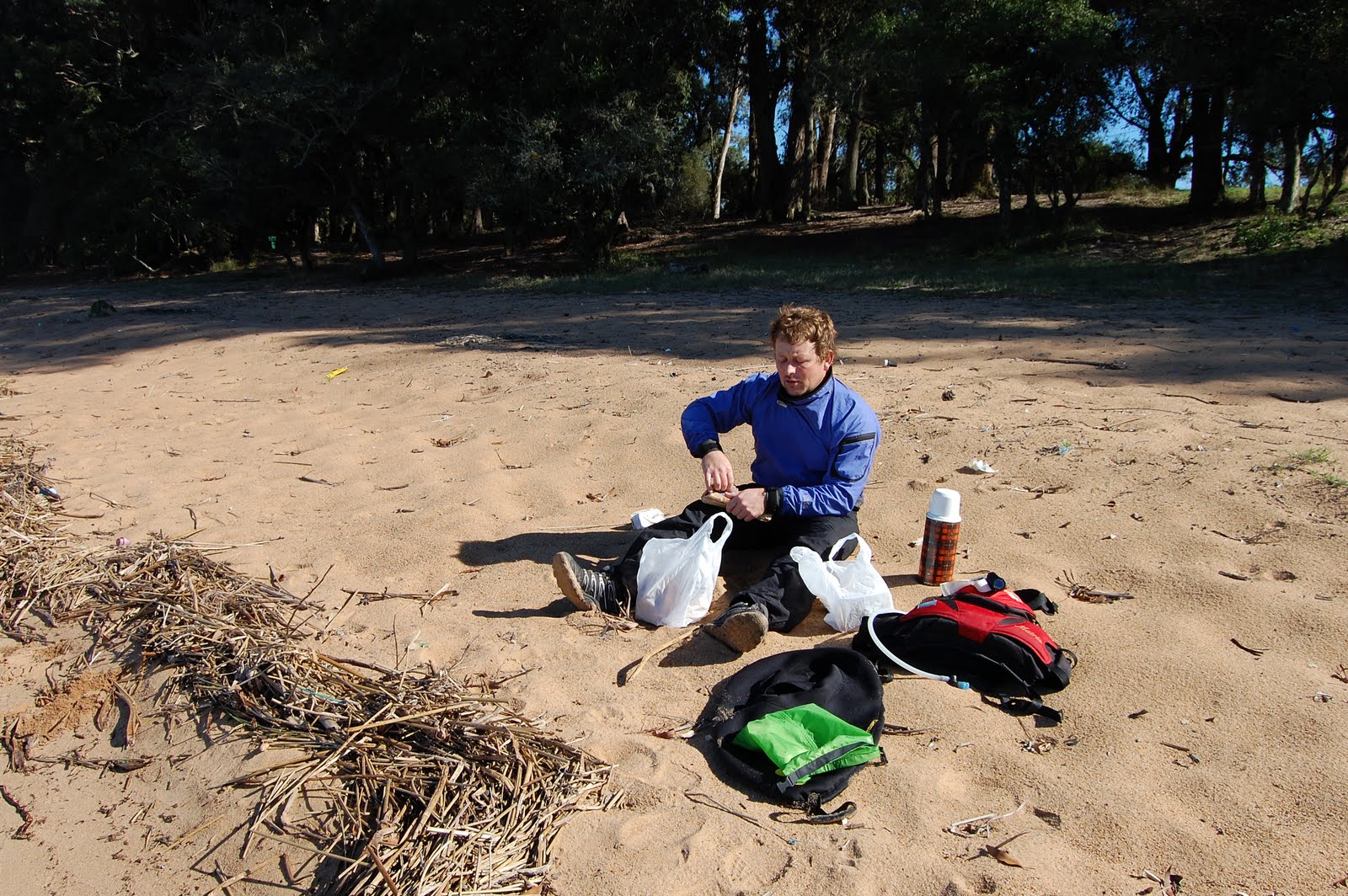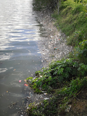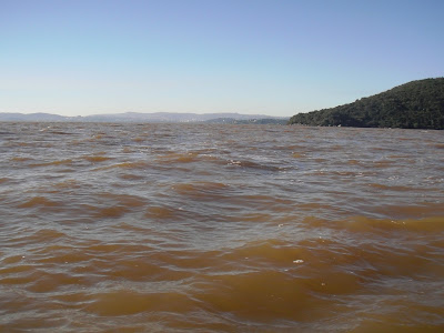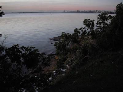 Infelizmente, esse espetáculo tem cenas tristes como a chaminé da Borregar e o lixo que acumula na beira do pobre rio/lago Guaíba. Não dá pra ver, mas tem um sofá no monte de lixo da foto abaixo. Leonardo e eu ficamos imaginando que o sofá estava ali de propósito, para que as pessoas podessem sentar e admirar a paisagem...